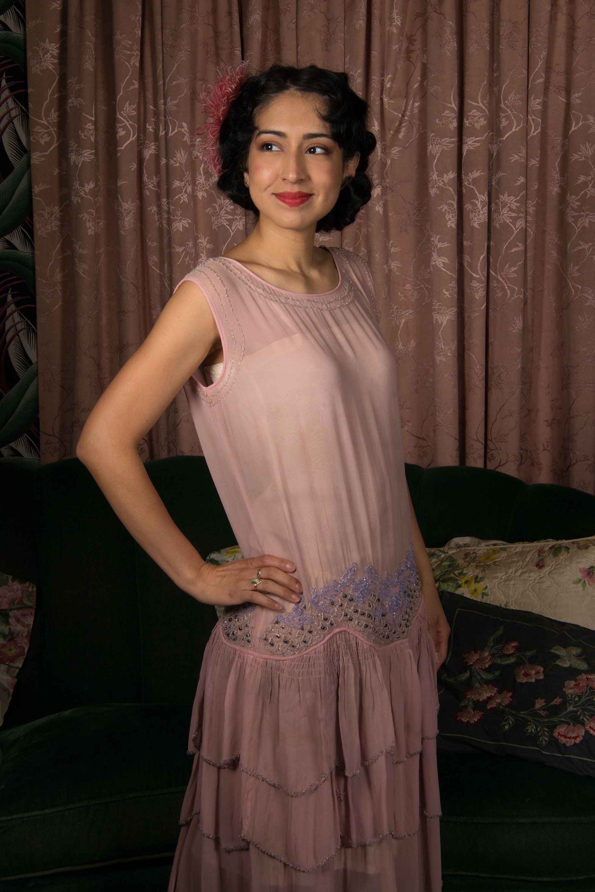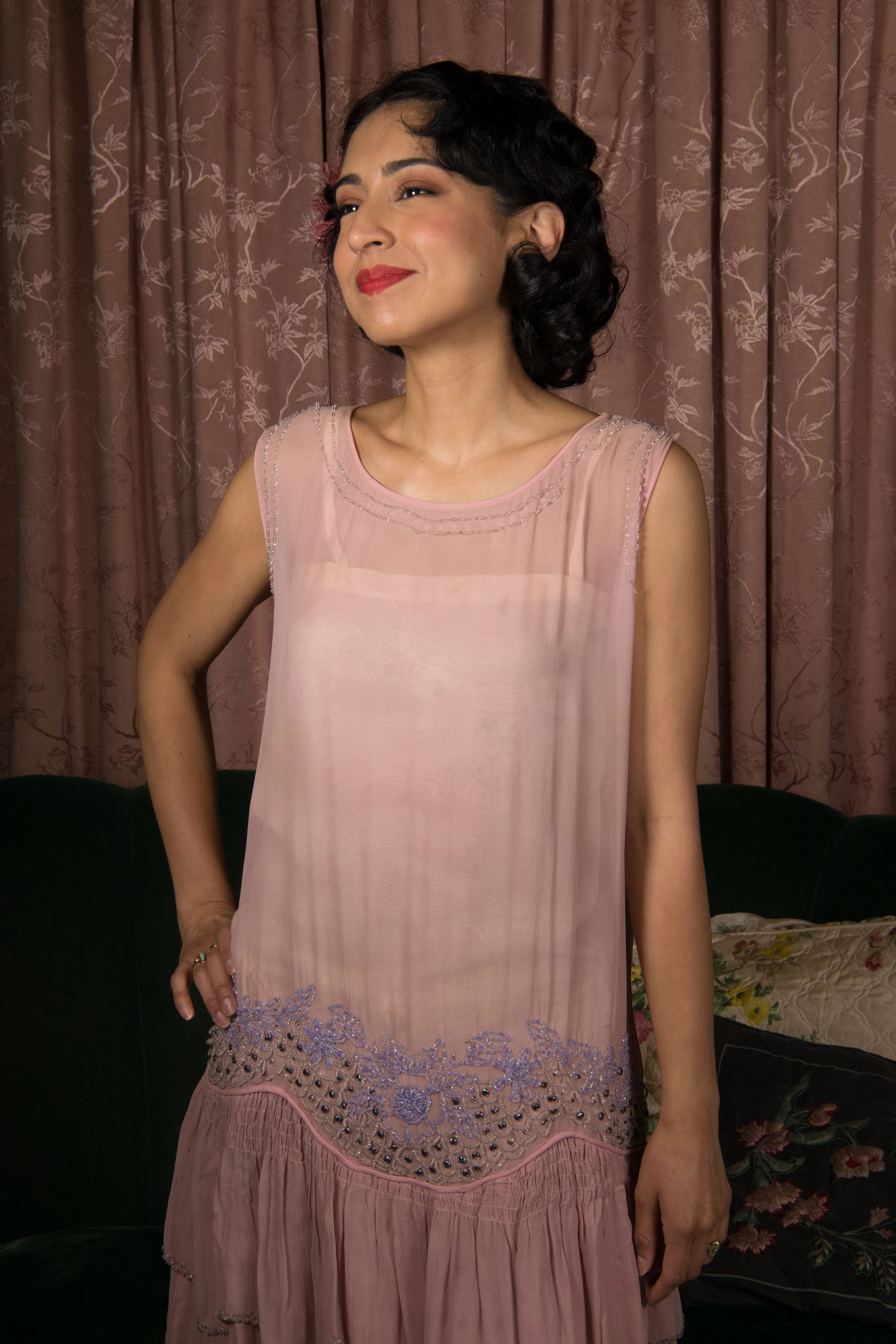 Only accessories original to the piece and specifically described in the listing are included with purchase. All contrasting belts, necklaces, scarves or other items on mannequins or models are for inspiration only and are not included. All included pieces, including original self-fabric belts will be clearly and explicitly described in the listing.