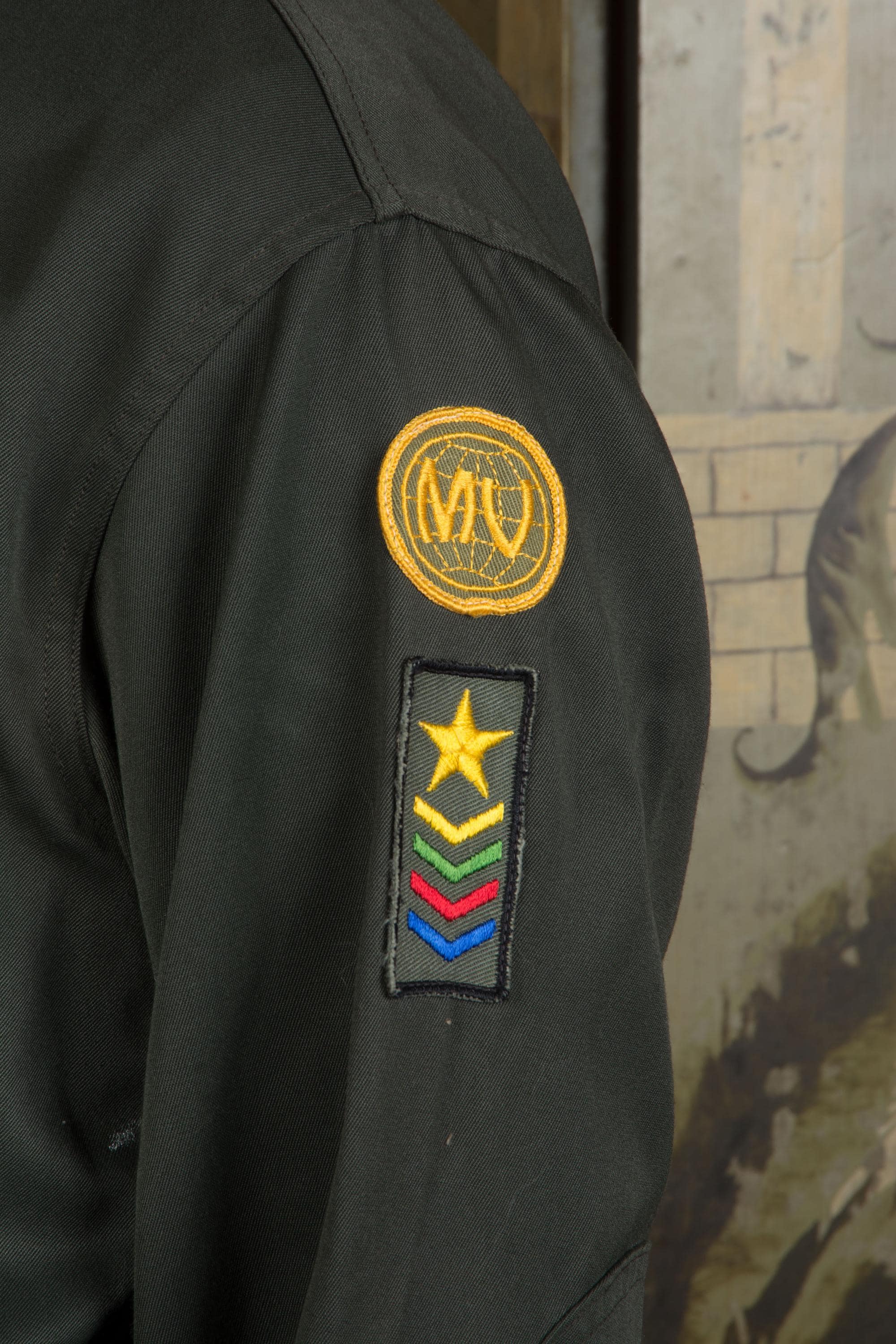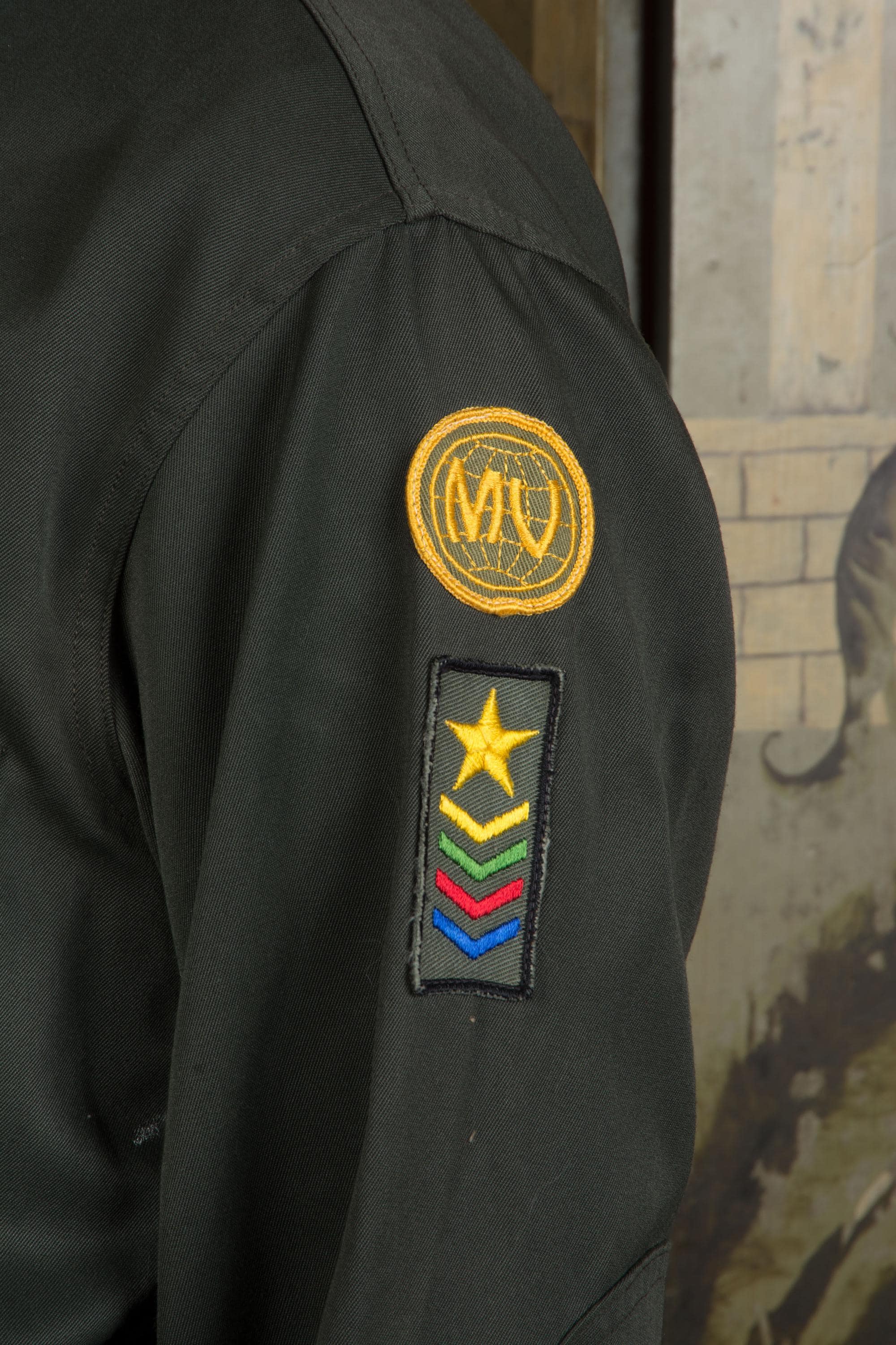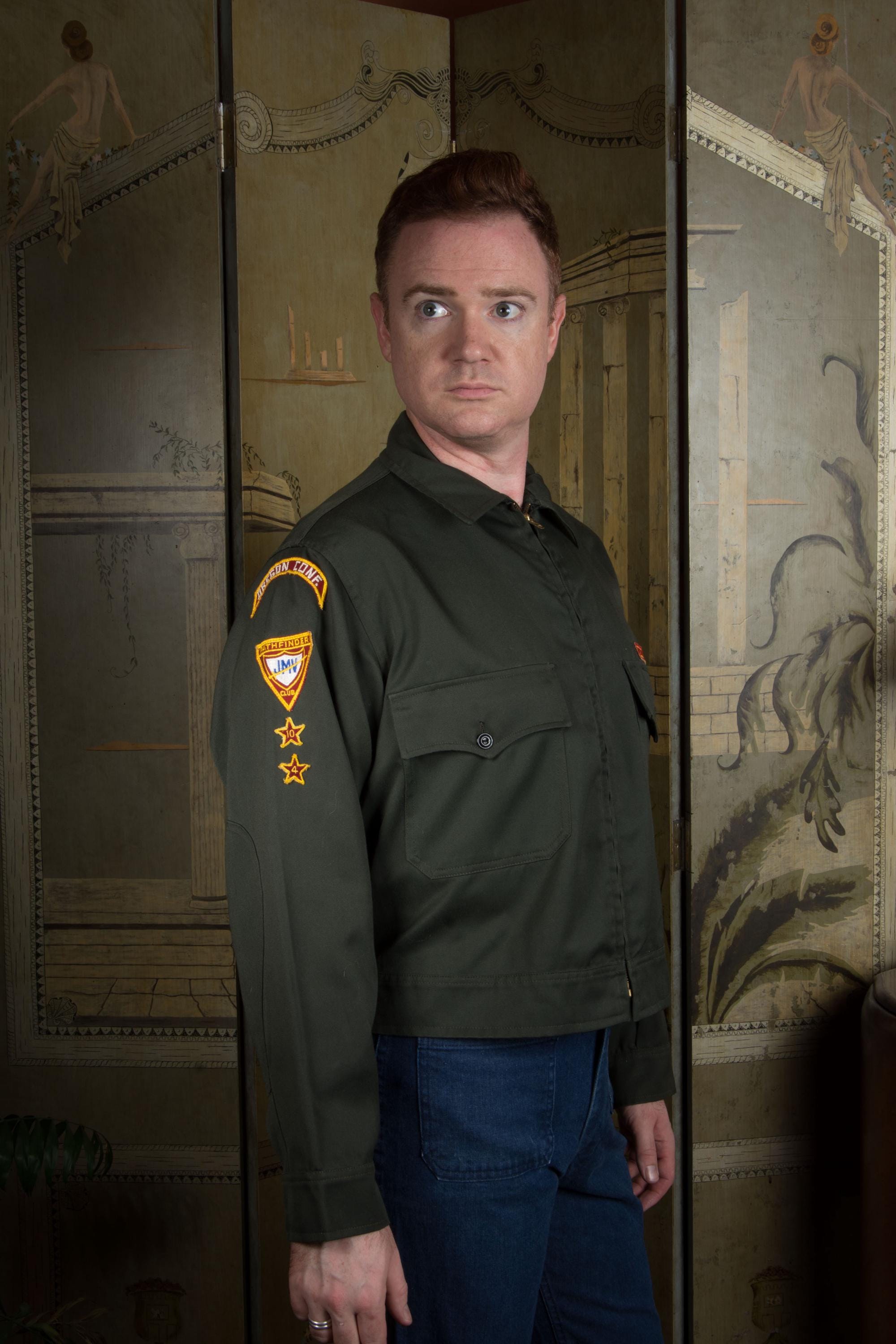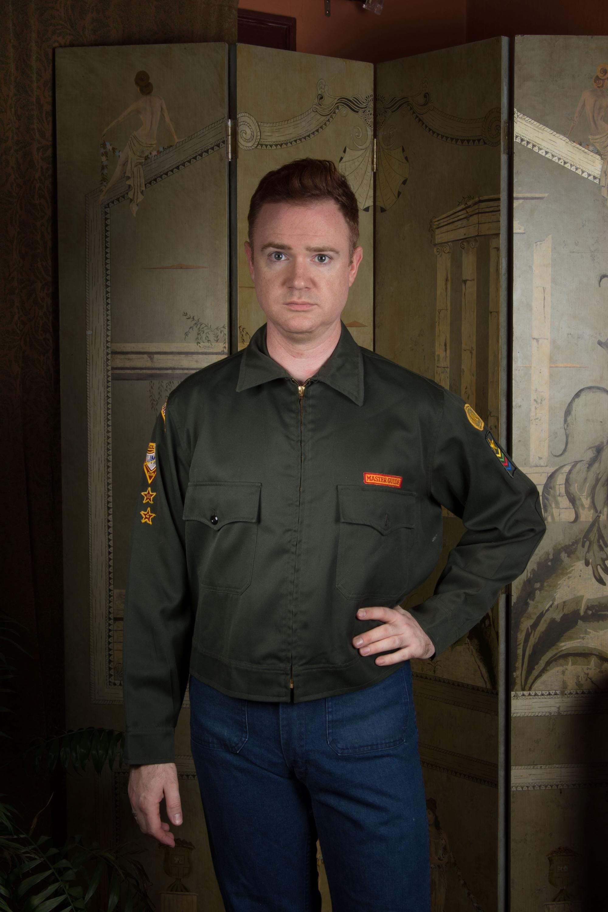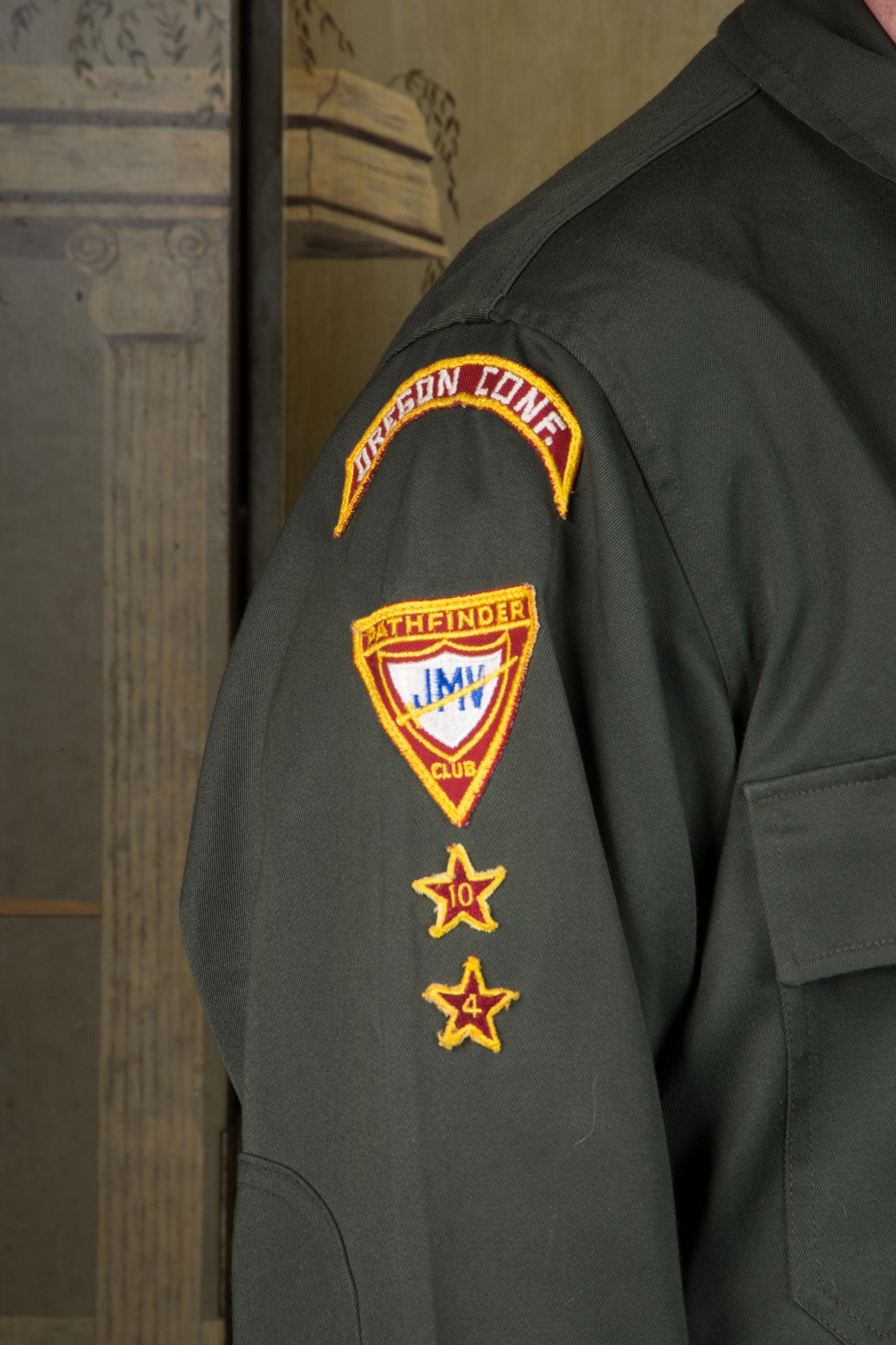 Vintage 1960s army green colored zip front jacket - a lightweight outerwear jacket with heavy metal zipper. I admit I thought this was a BSA thing, but it's actually "Pathfinders" "Master Guide" level jacket from the Oregon conference. Unlined. Two front flap pockets and a banded waist.