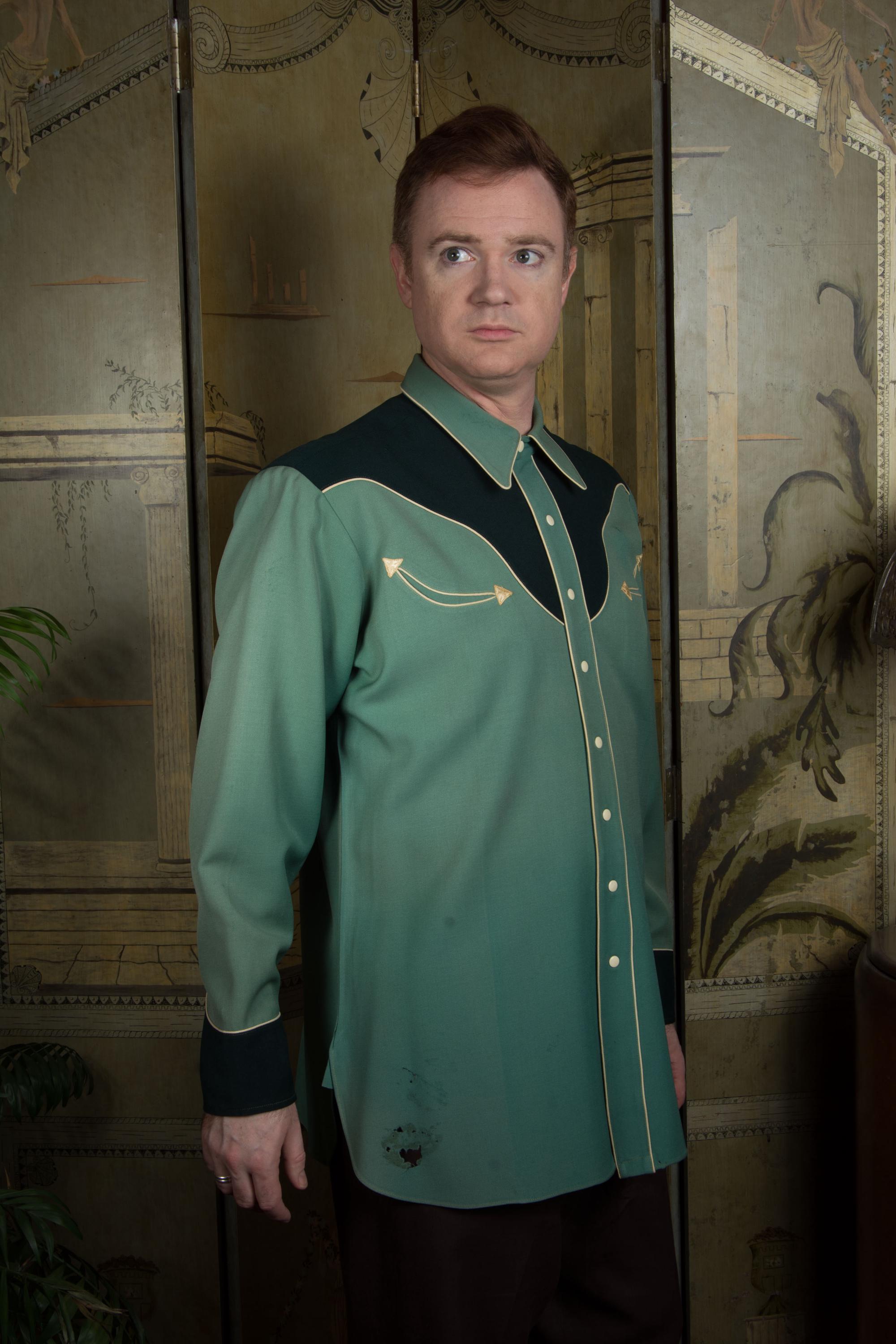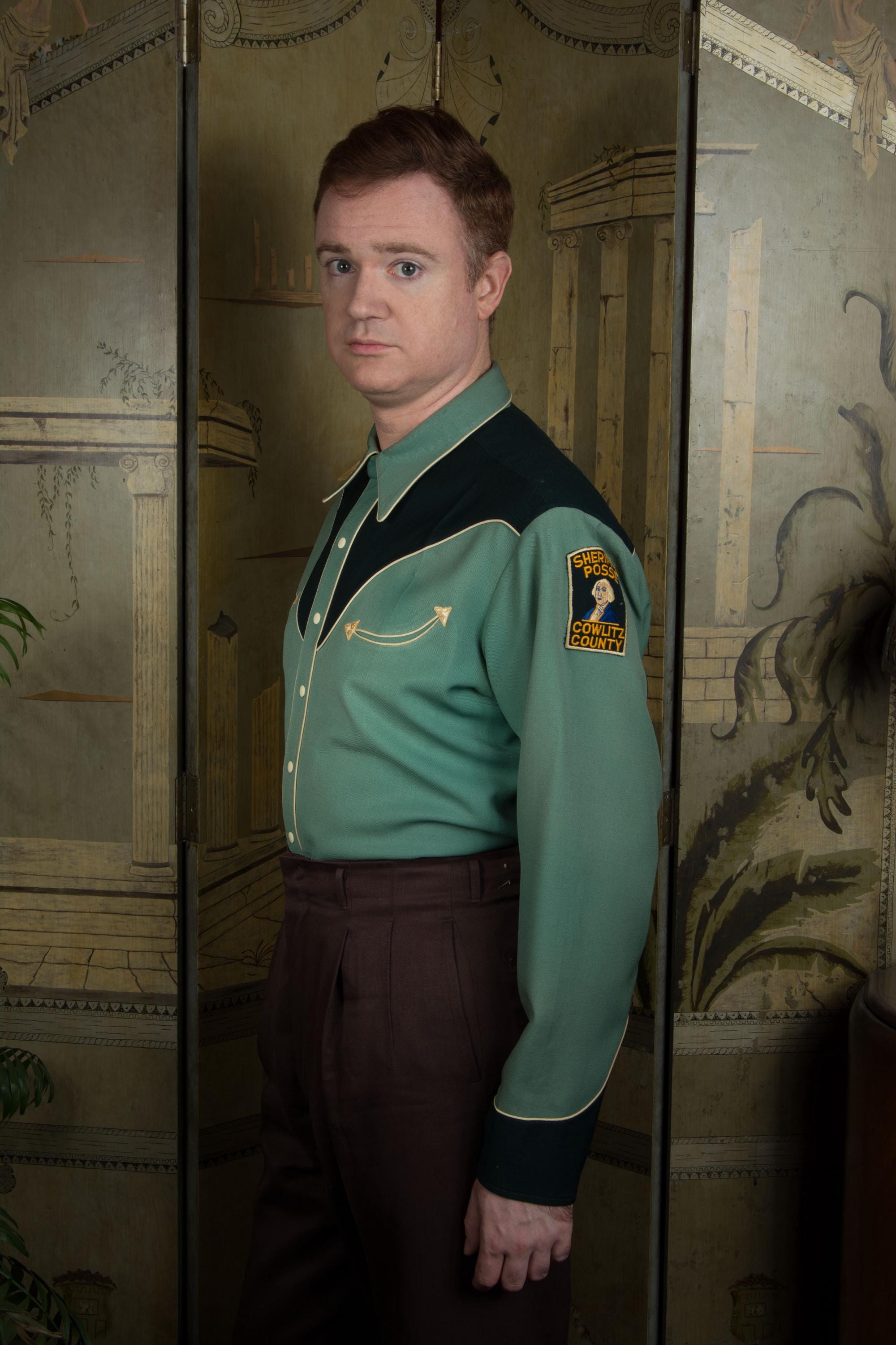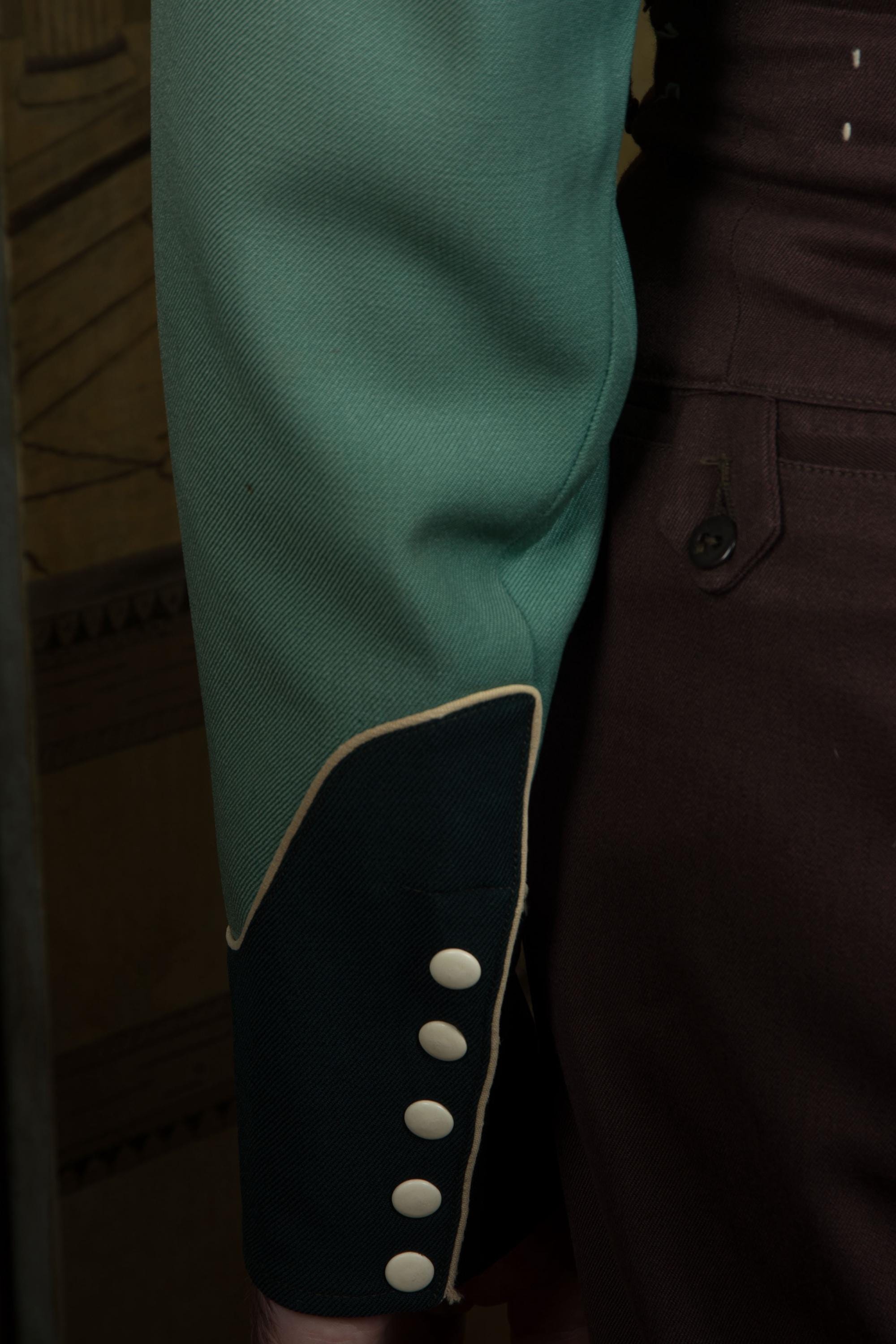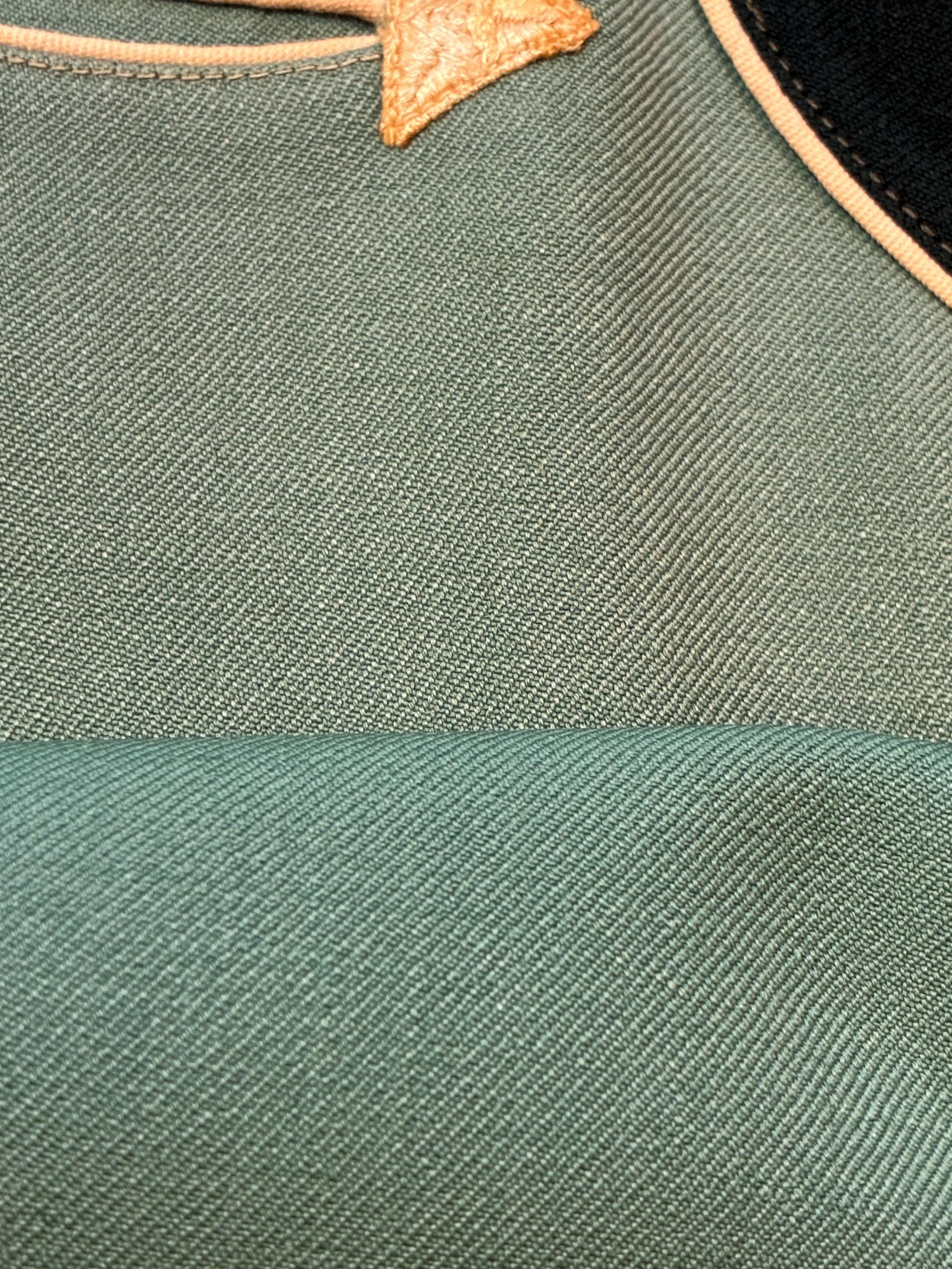 A very sturdy 1950s western shirt originally made as a uniform. This bears a patch for the Cowlitz Country "Sheriff's Posse" which definitely sounds like something out of a western film. The worsted wool is in great colors - jade and forest green. Each sleeve has five working snap buttons, and it closes with eight more down the front. The arrow pockets are edged with white piping. A super sturdy shirt in the classic style.