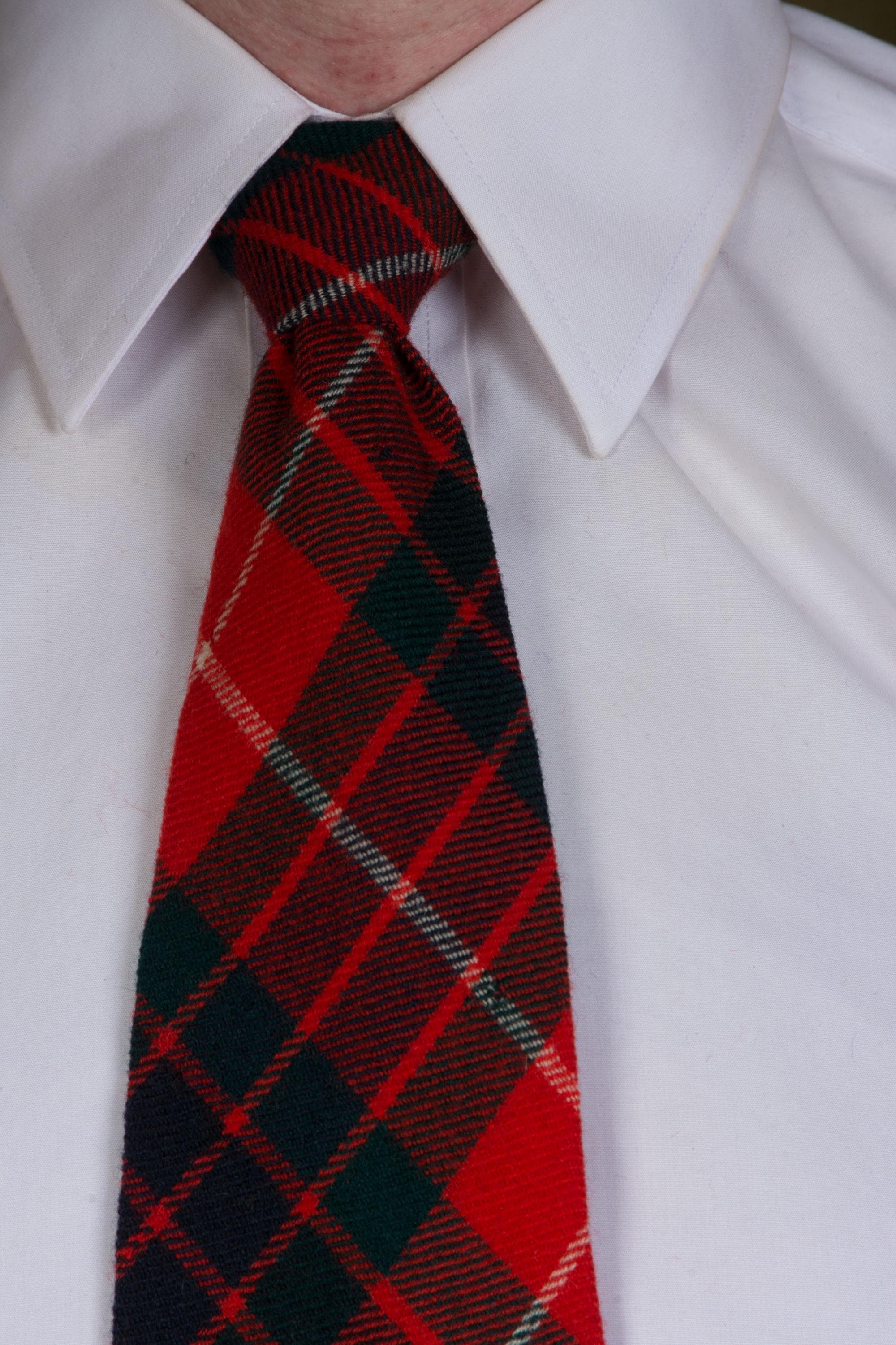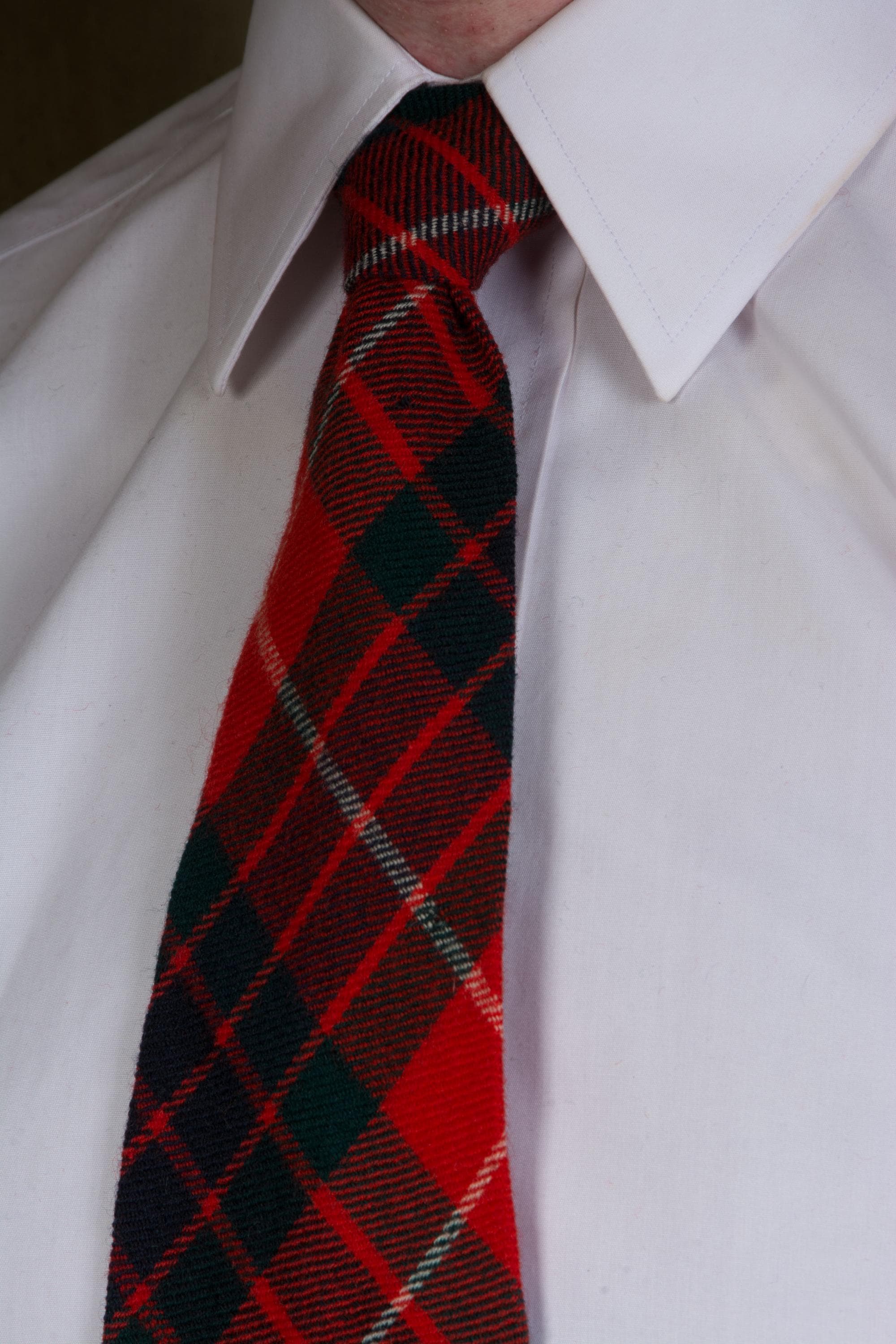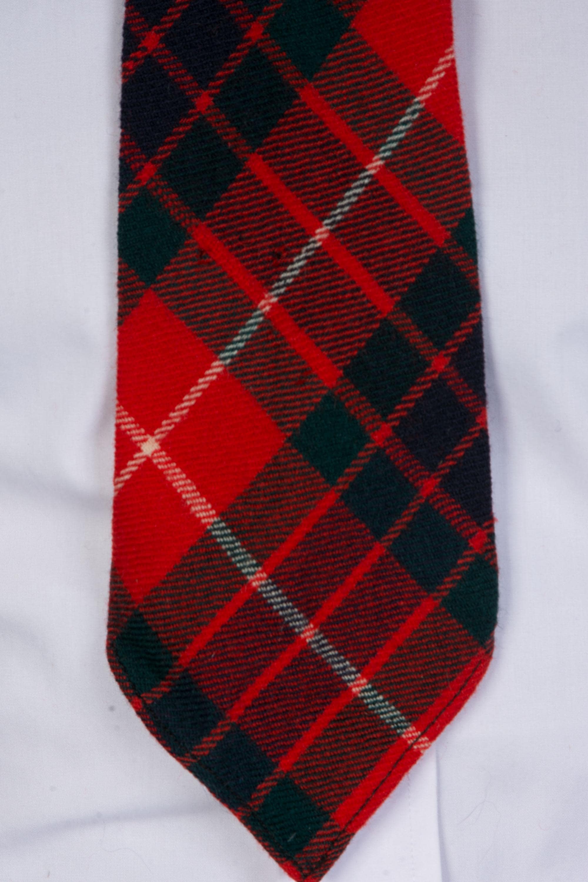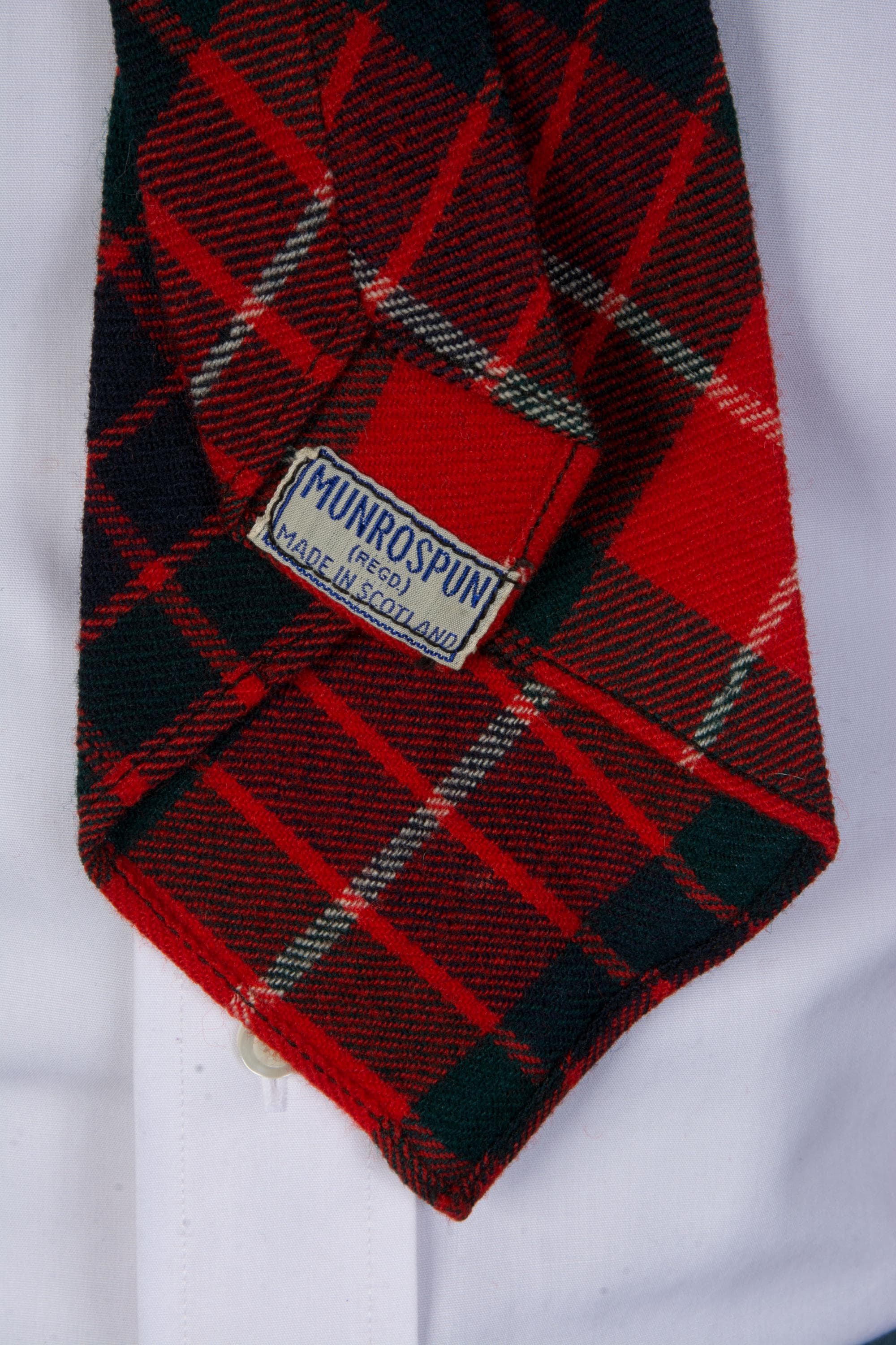 An imperfect but very awesome tie - authentic Scottish wool tartan in Fraser Red, woven with green, white and dark navy blue. It is a fine woven wool, very soft. The label dates it to the late 20s to early 1930s.