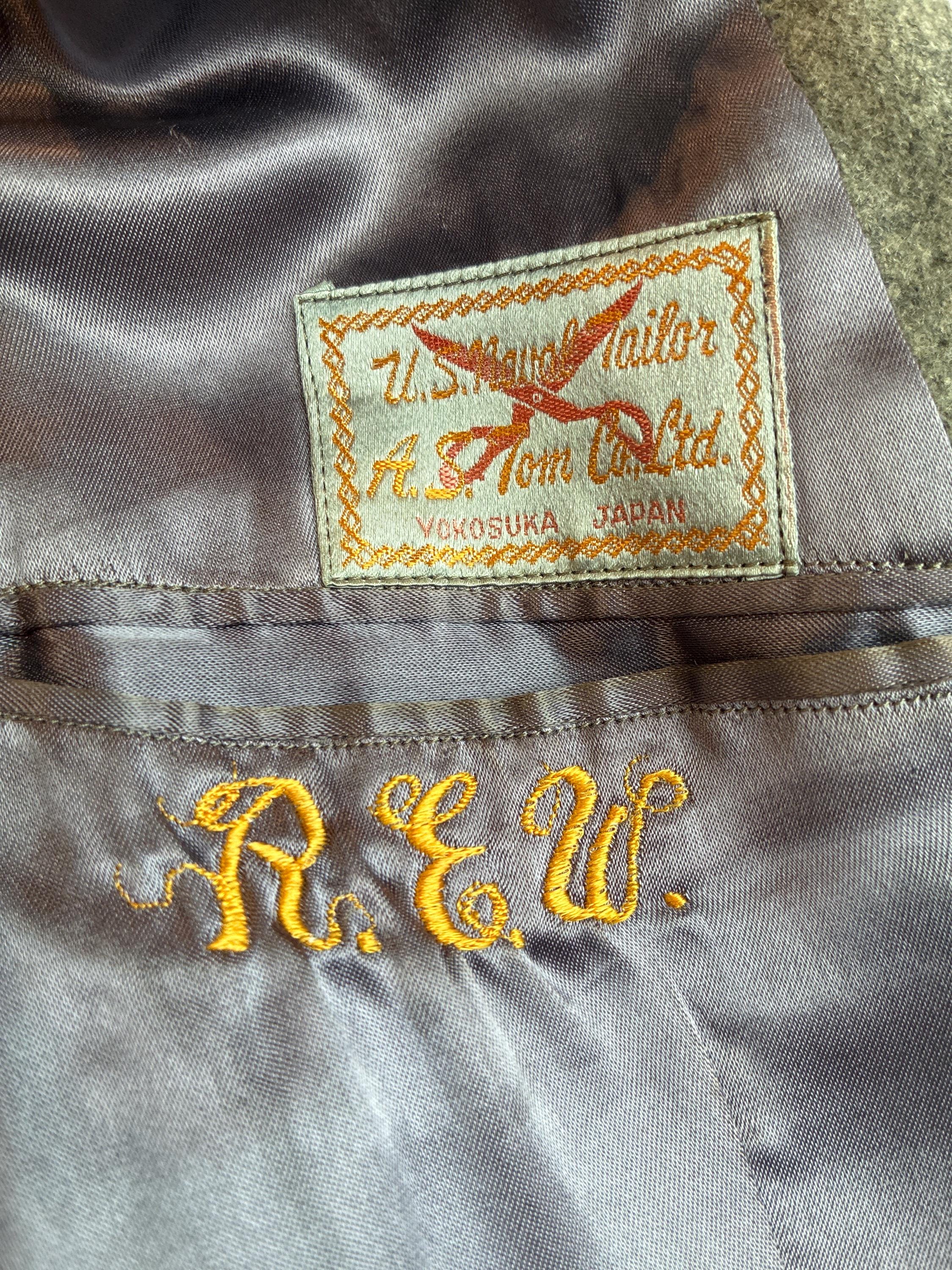 Label: US Naval Tailor, A.S. Tom Co Ltd, Yokosuka Japan, original owner's intials R.E.W.