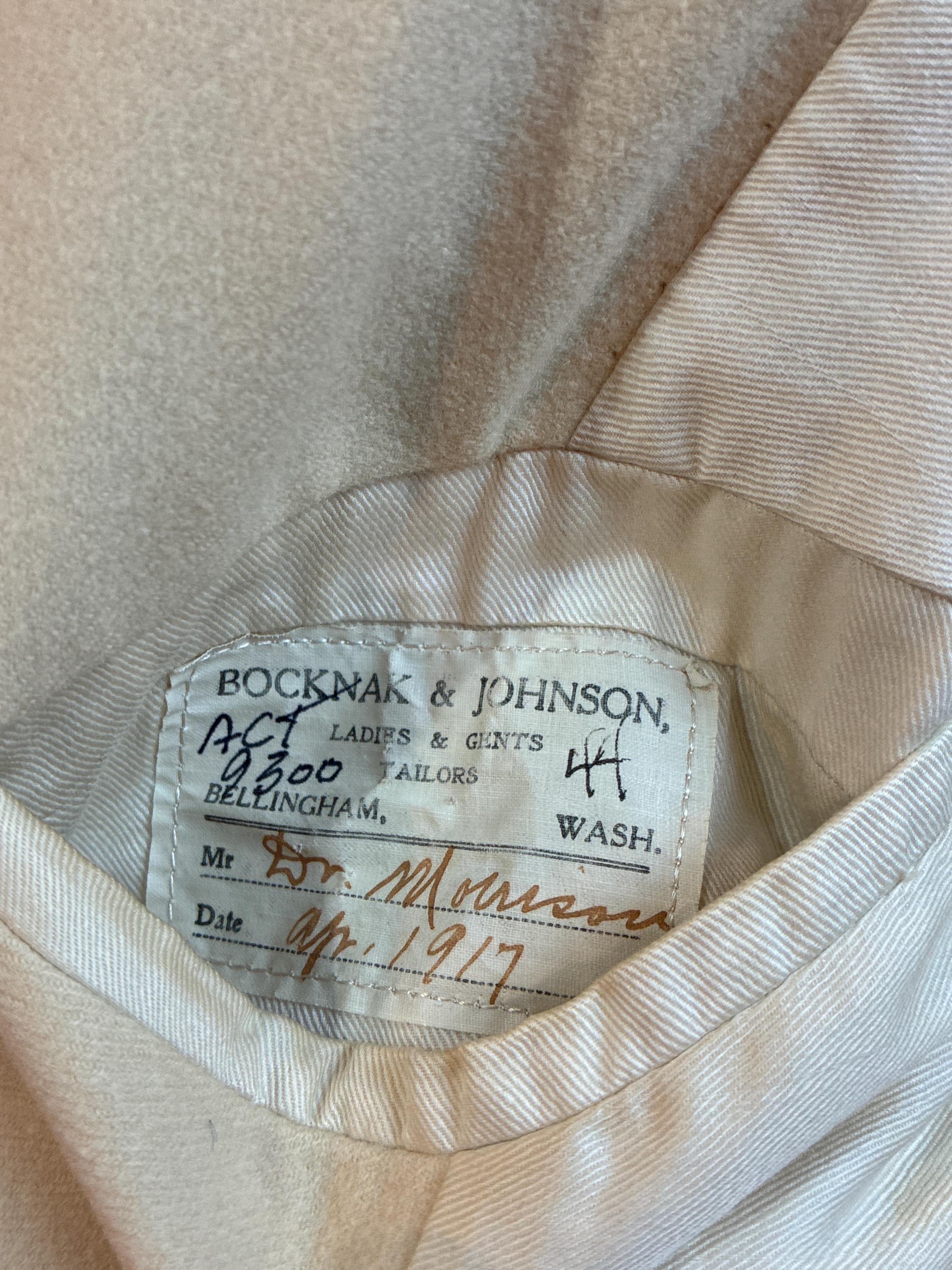 Label: Bocknack & Johnson, Ladies & Gents Tailors, Bellingham, WA Dr. Morrison Apr. 2017