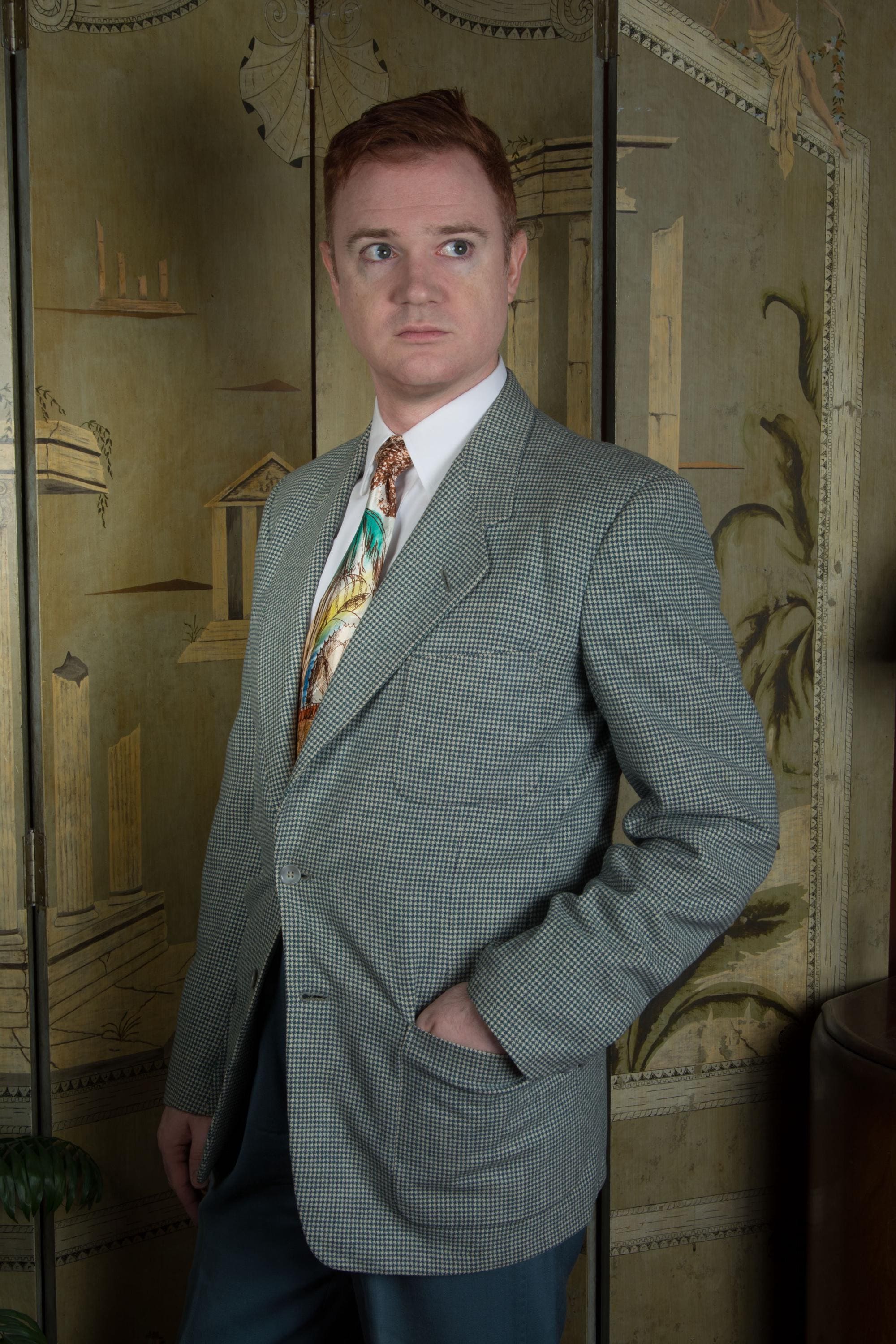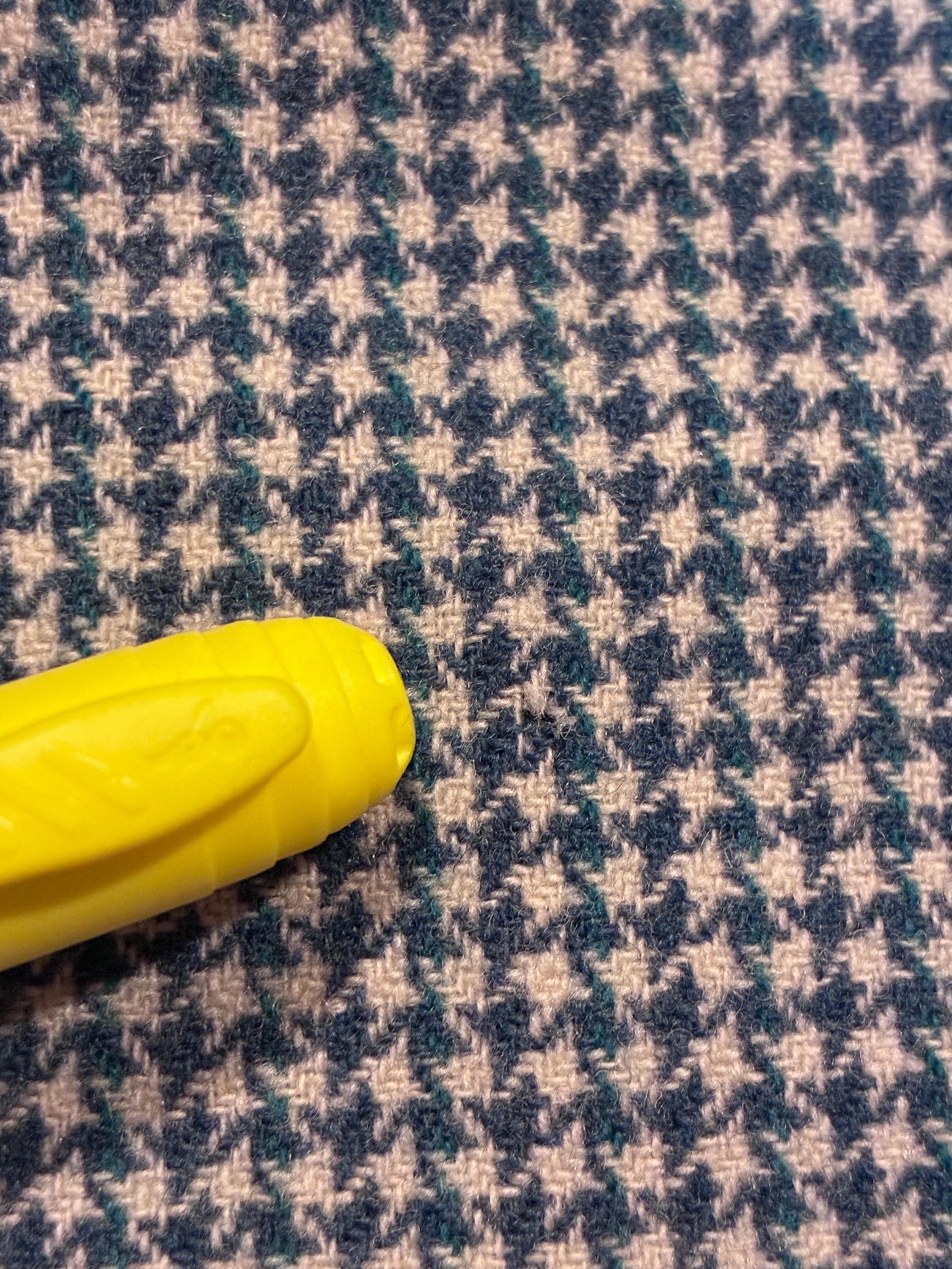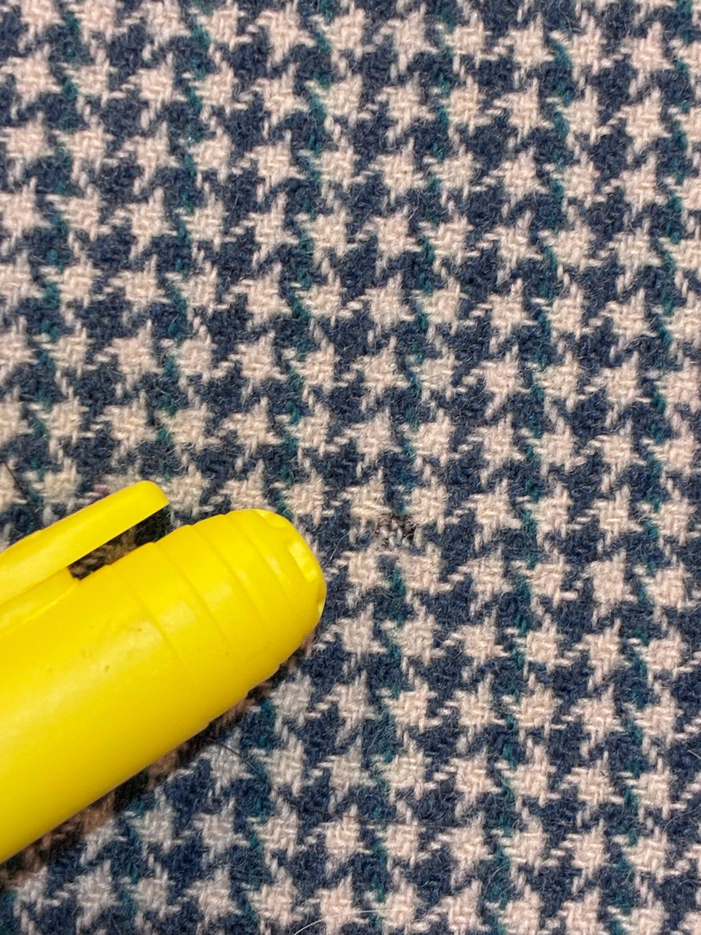 Dry cleaned and read to wear. There remains some soil to the lining around the pocket, the lining was pressed with some wrinkling. There are two very small moth chews, both well hidden by the pattern - one to the right of the buttons at lower front, and one at the back right below the shoulder. See close ups. I find no other issues to note! This wears beautifully.