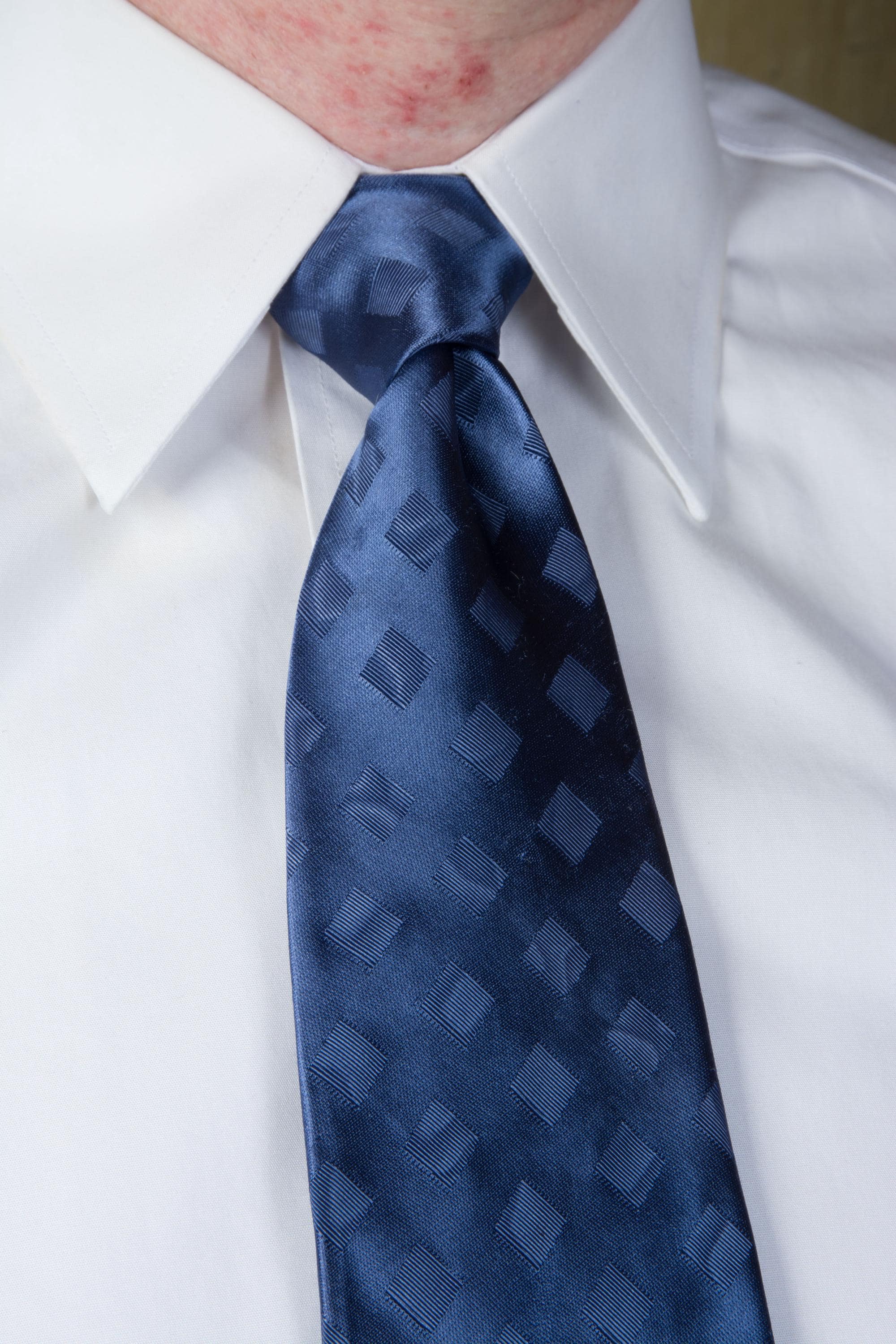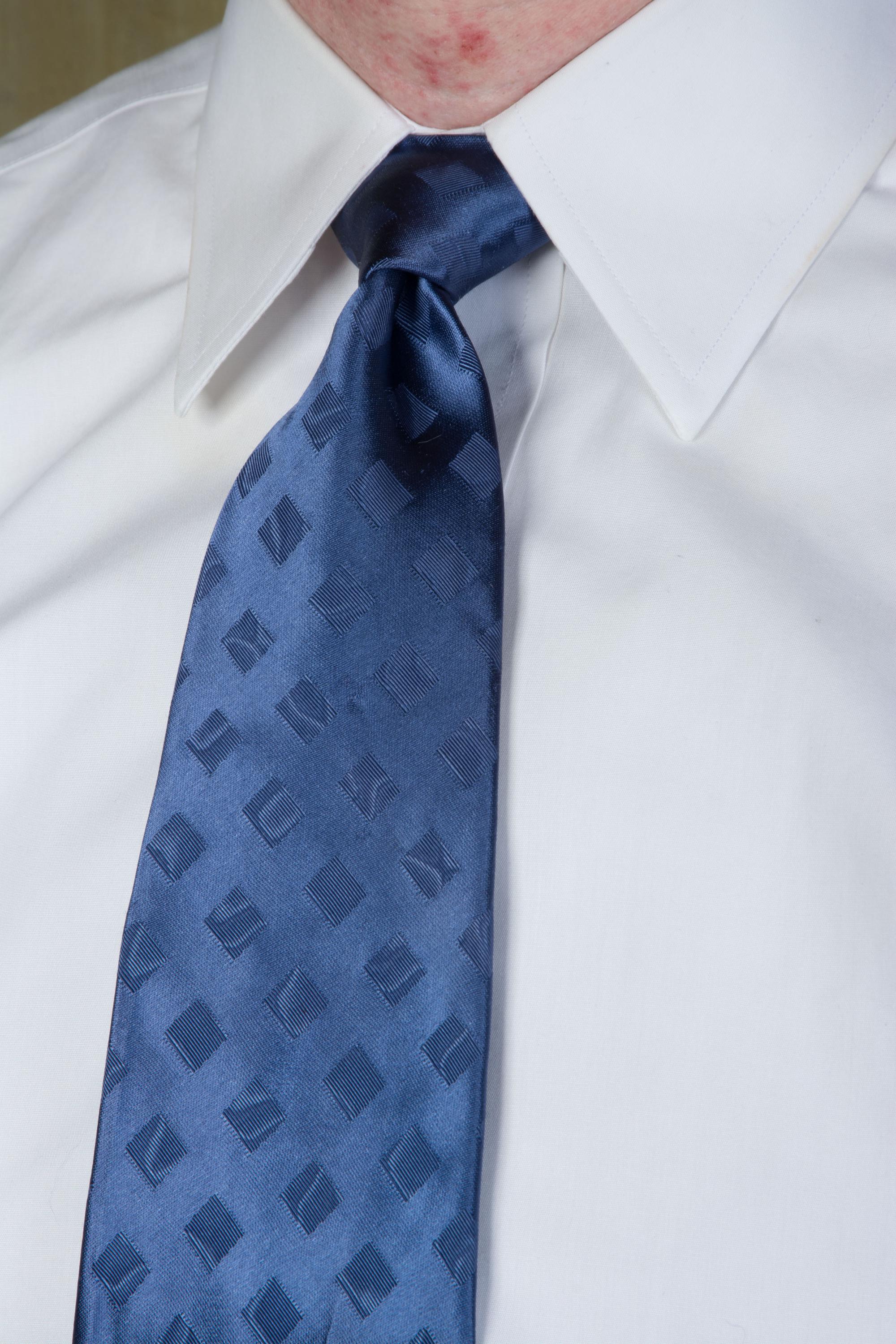 This tie has been dry cleaned and is ready to wear. They did press a slight crease into it that catches the light in some of our angled shots, but this will be corrected with further steaming and wear. There are a few very subtle light surface scuffs to the satin finish. I find no other issues to note.