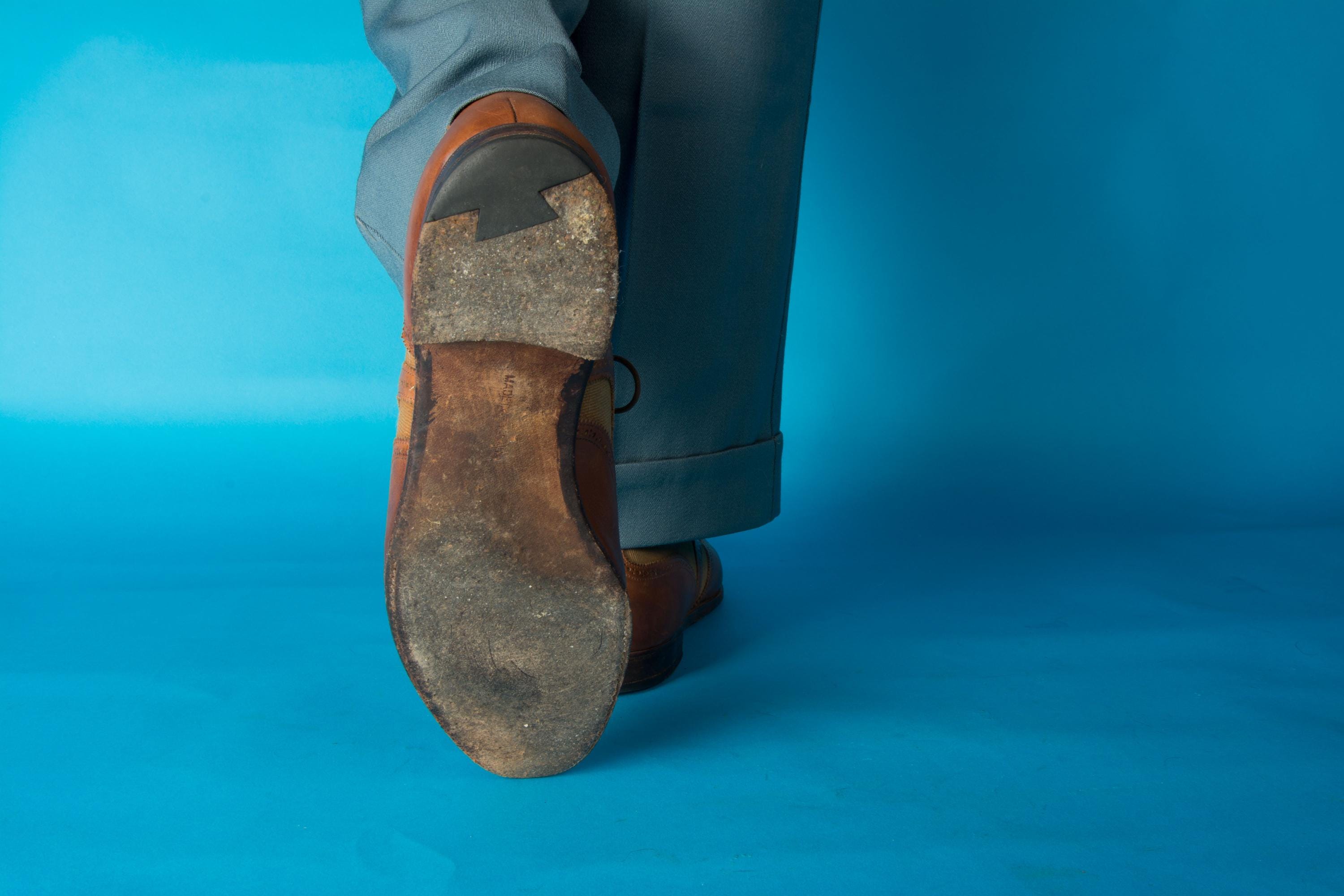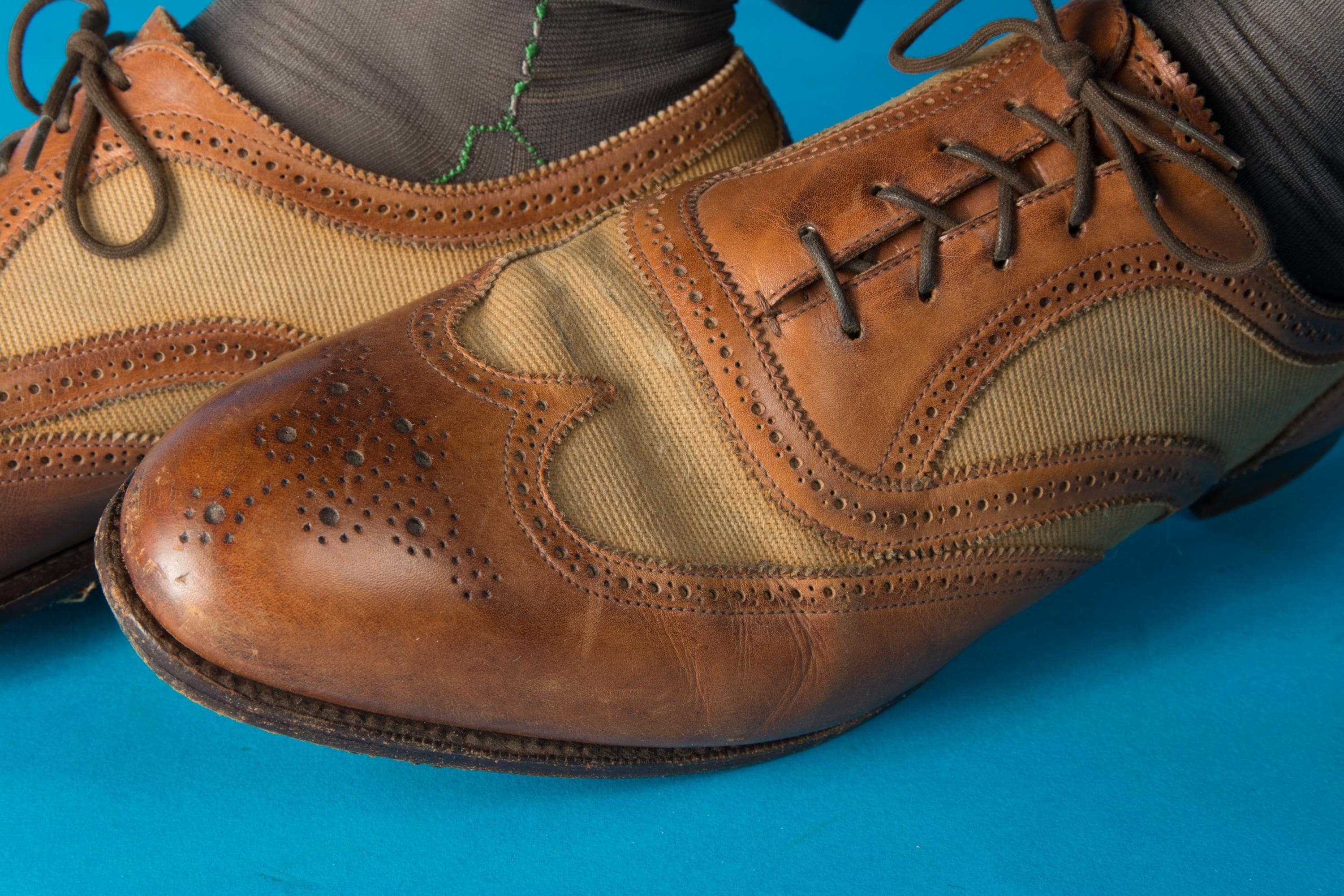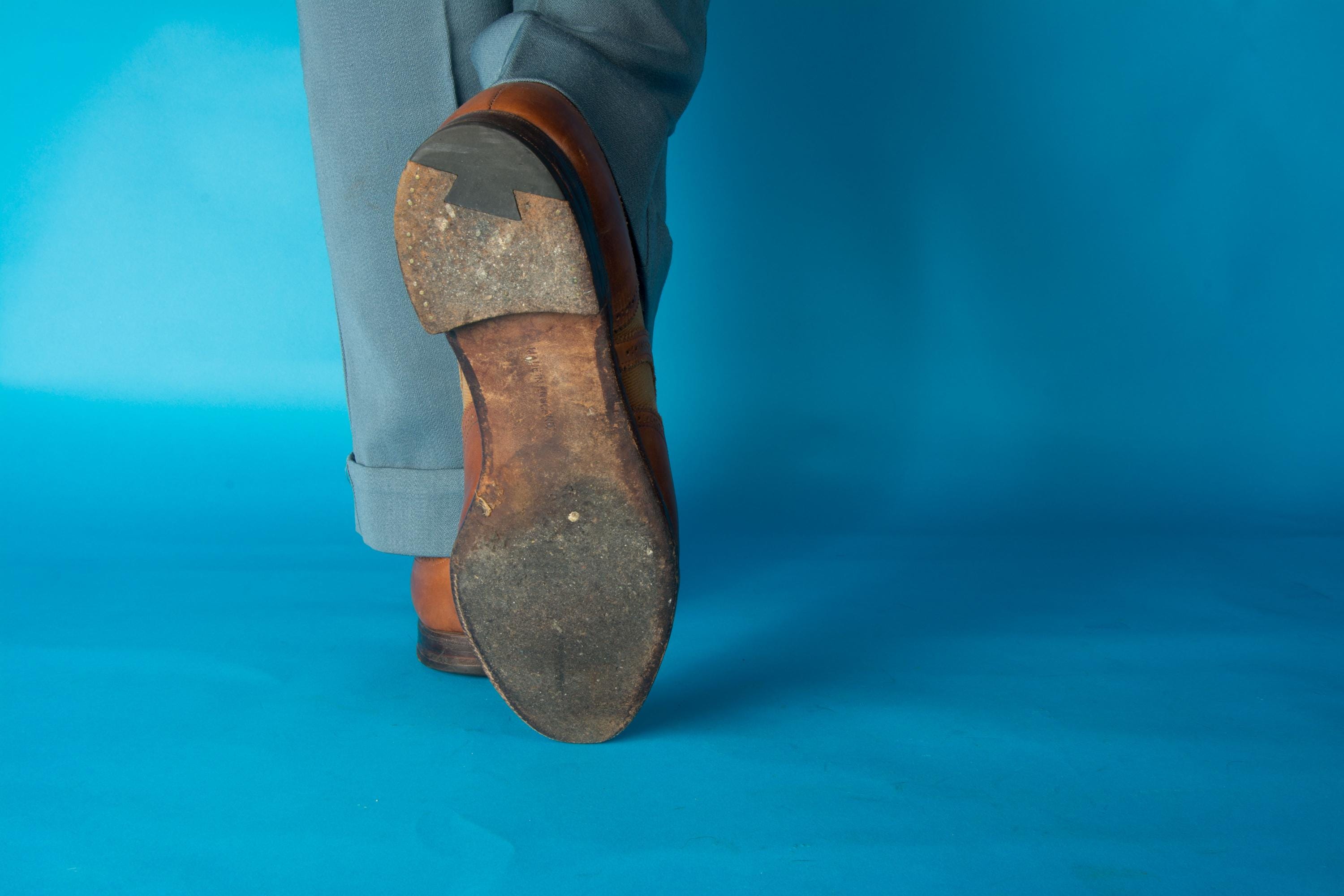 These shoes are sturdy and wearable. I have not done any polishing or restoration work. There is some variation to the leather color from normal wear. The toes have scuffs and nicks, particularly the left. Both heels have a man made inset done by a cobbler to repair uneven wear, and they have worn down a bit. These stunning shoes are still sturdy and wearable. A little professional care will have them absolutely shining.