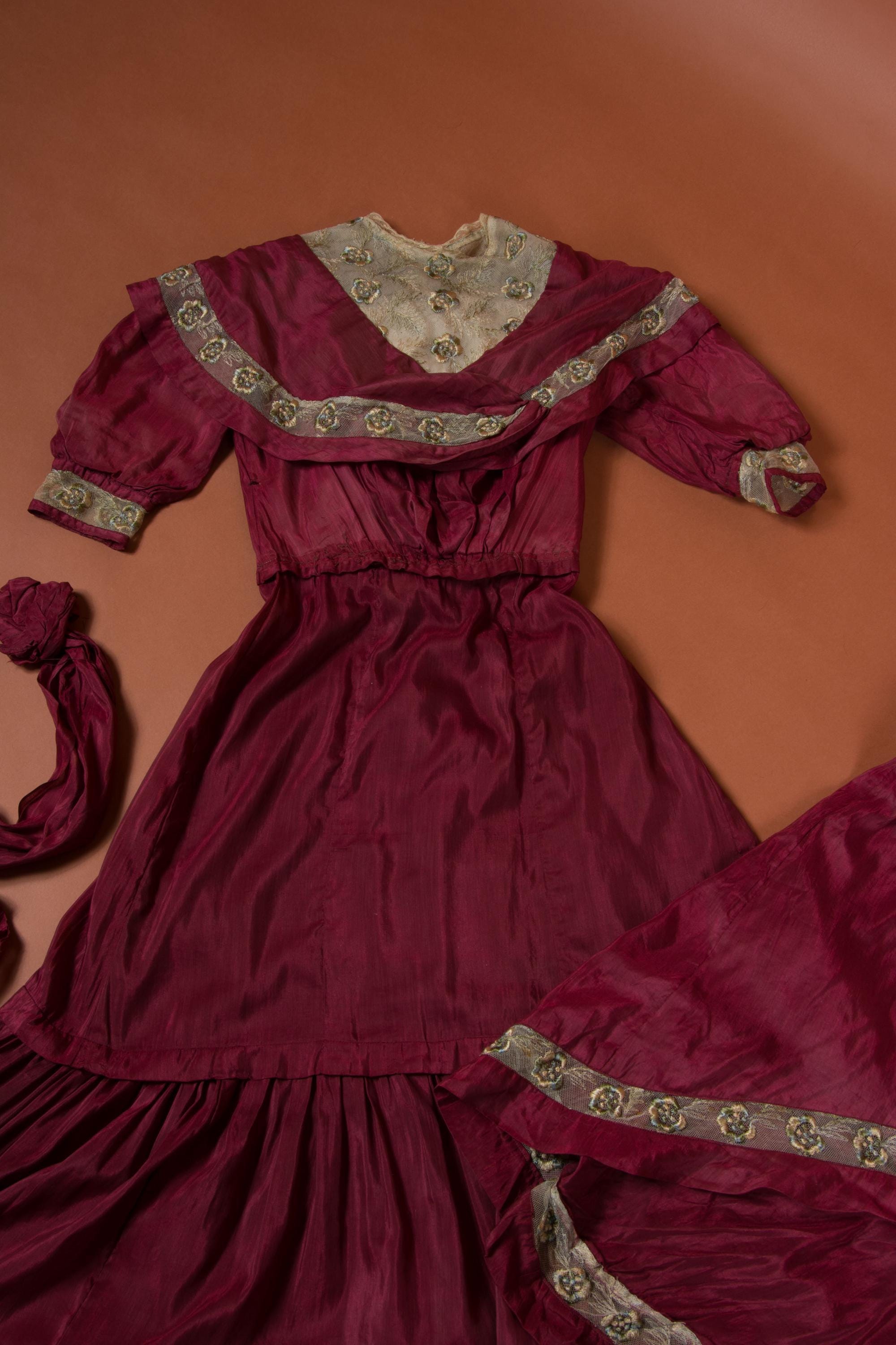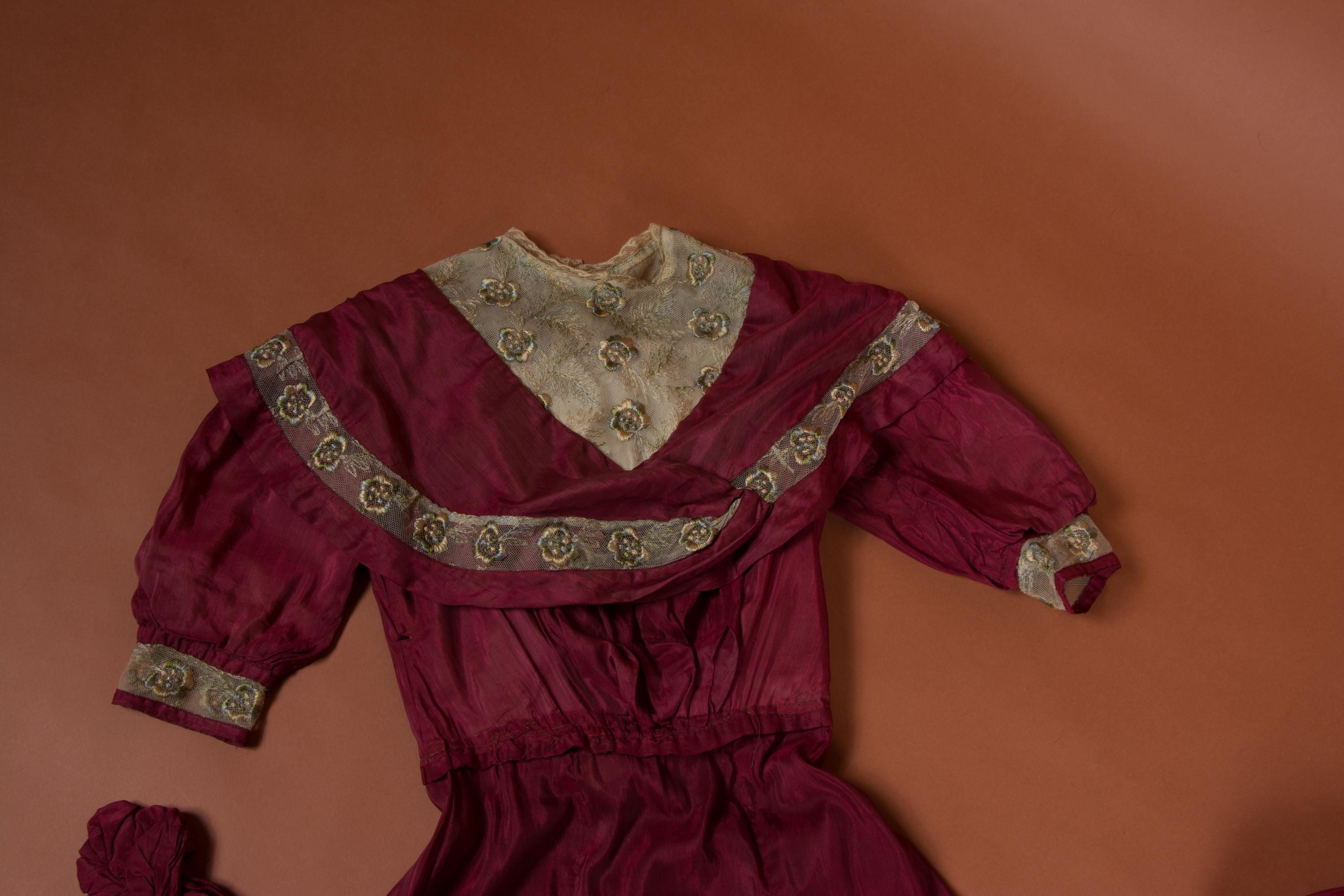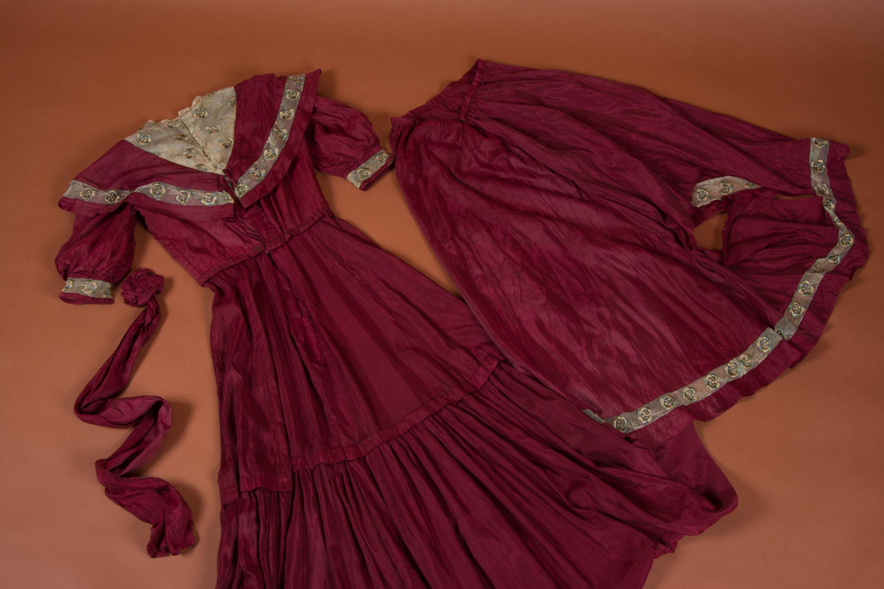 Lot #2 A 1900s Burgundy Silk Dress of Three Pieces WOUNDED BIRDS SALE