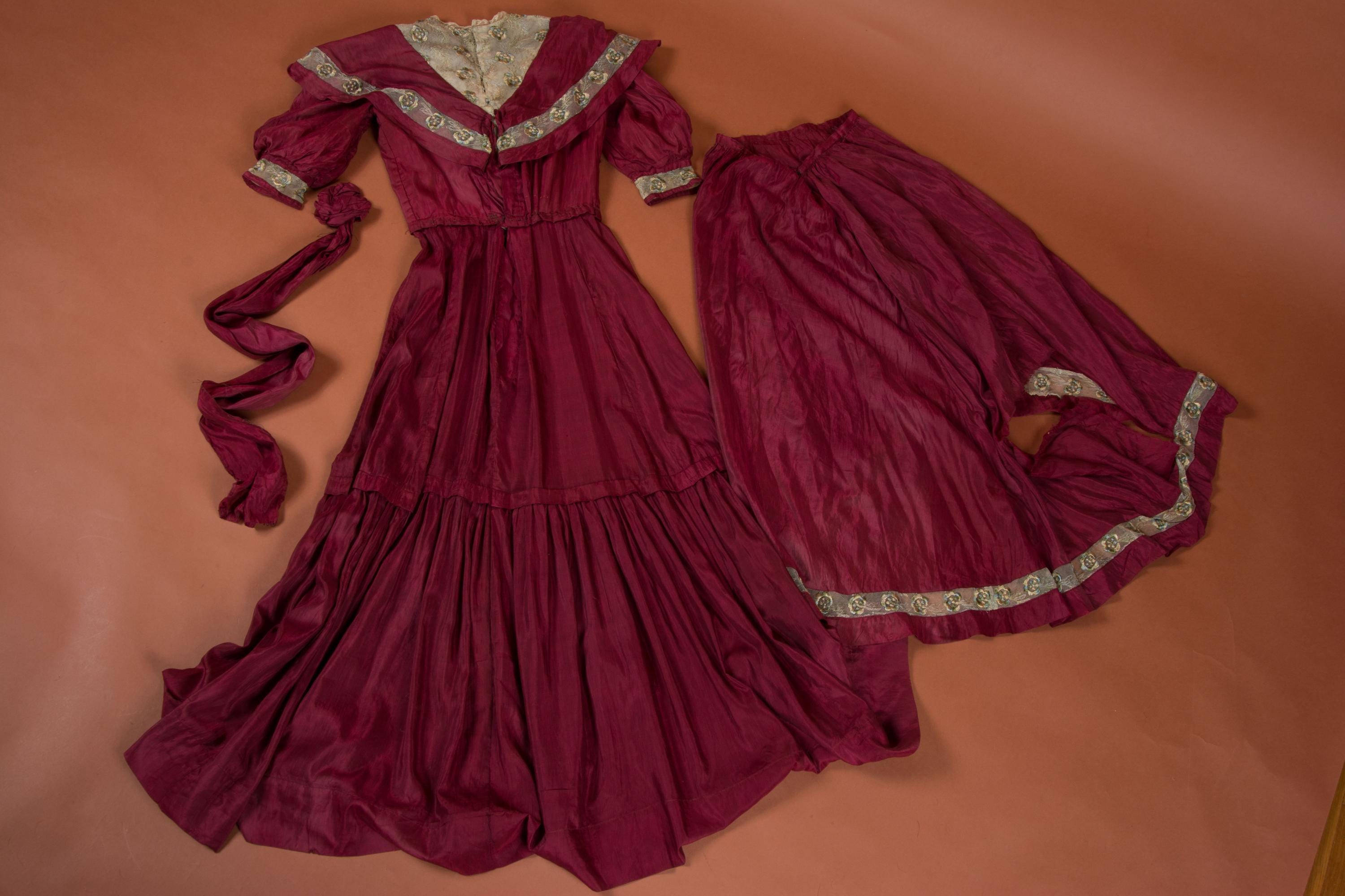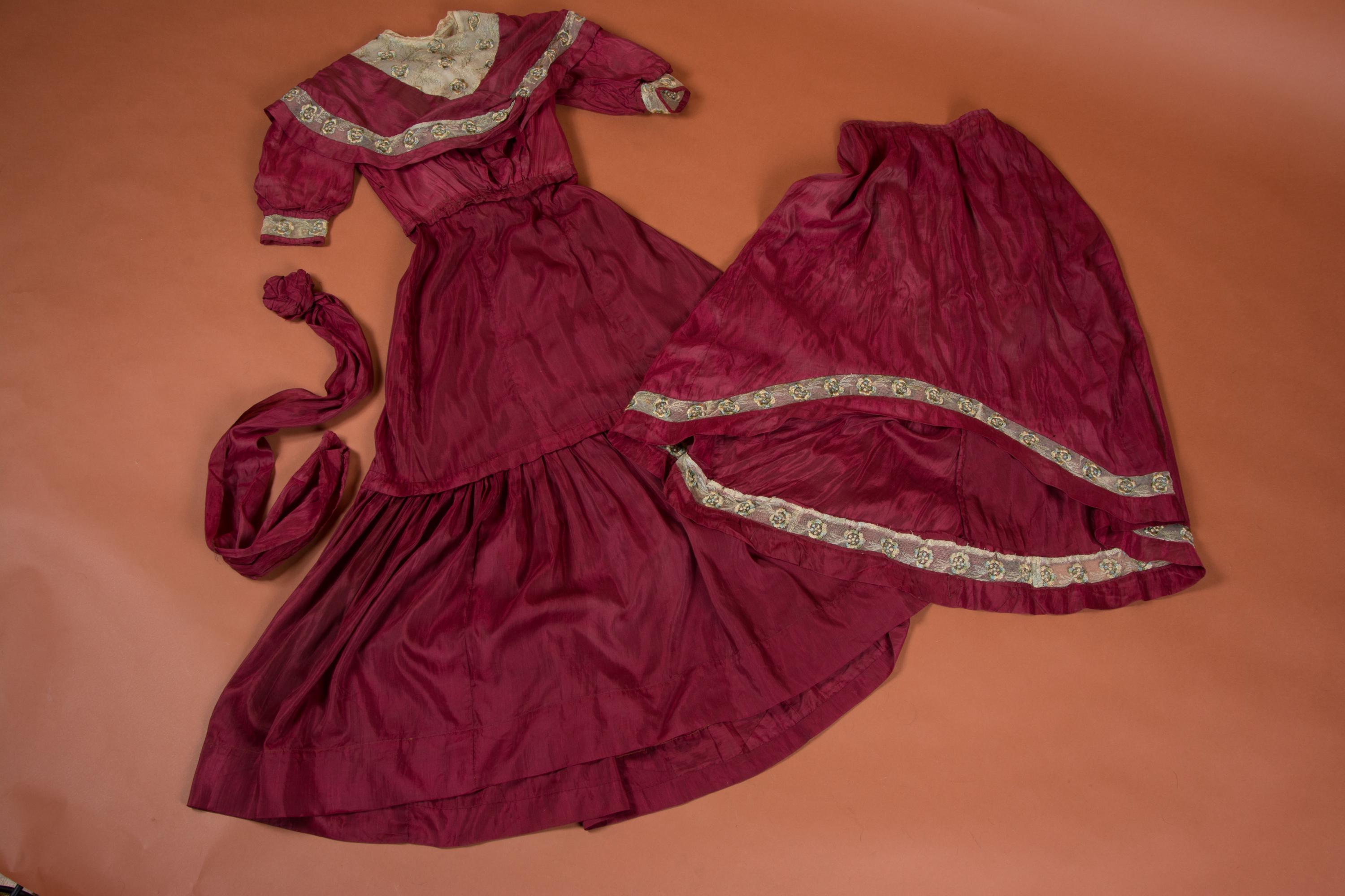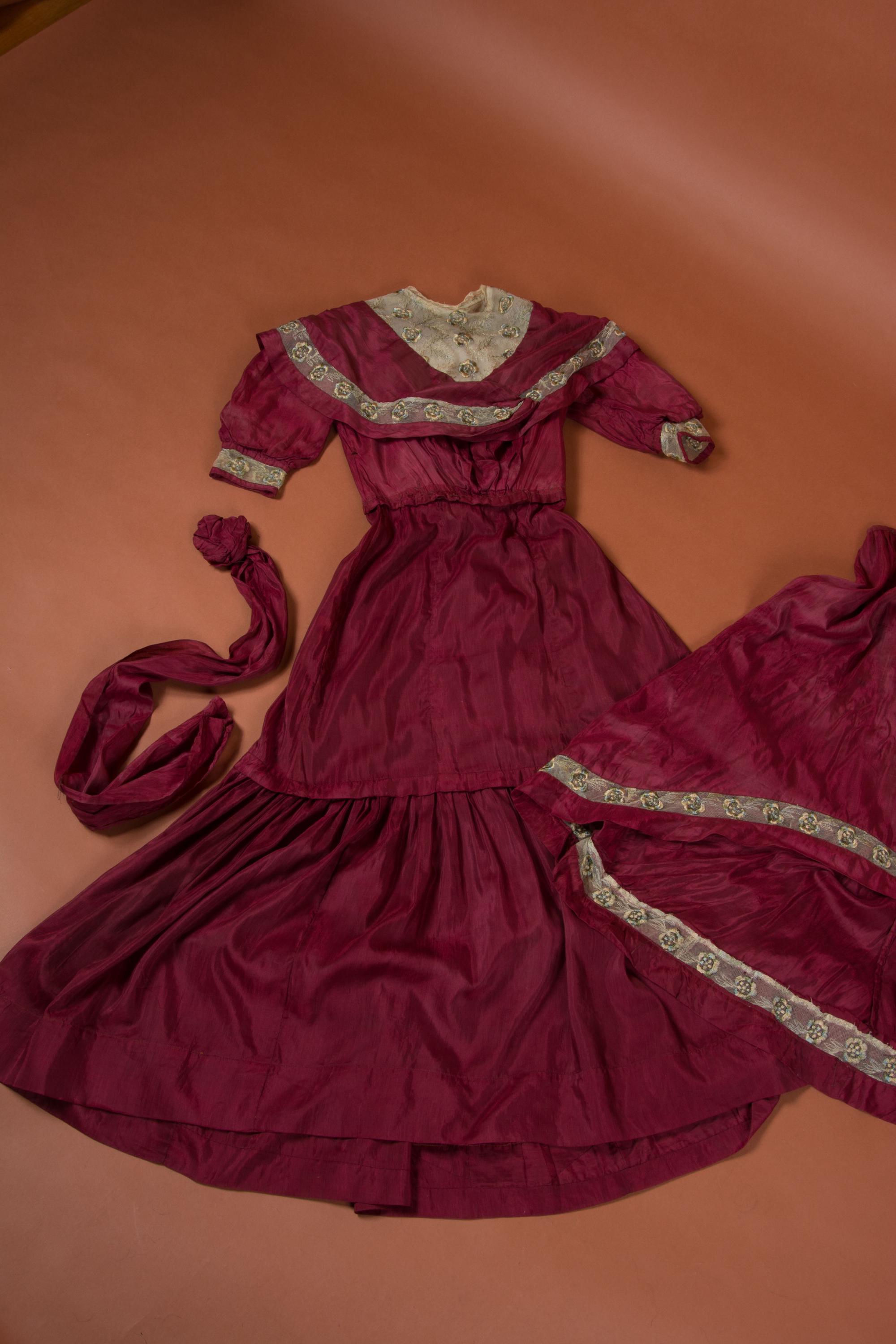 Lot #2 A 1900s Burgundy Silk Dress of Three Pieces WOUNDED BIRDS SALE