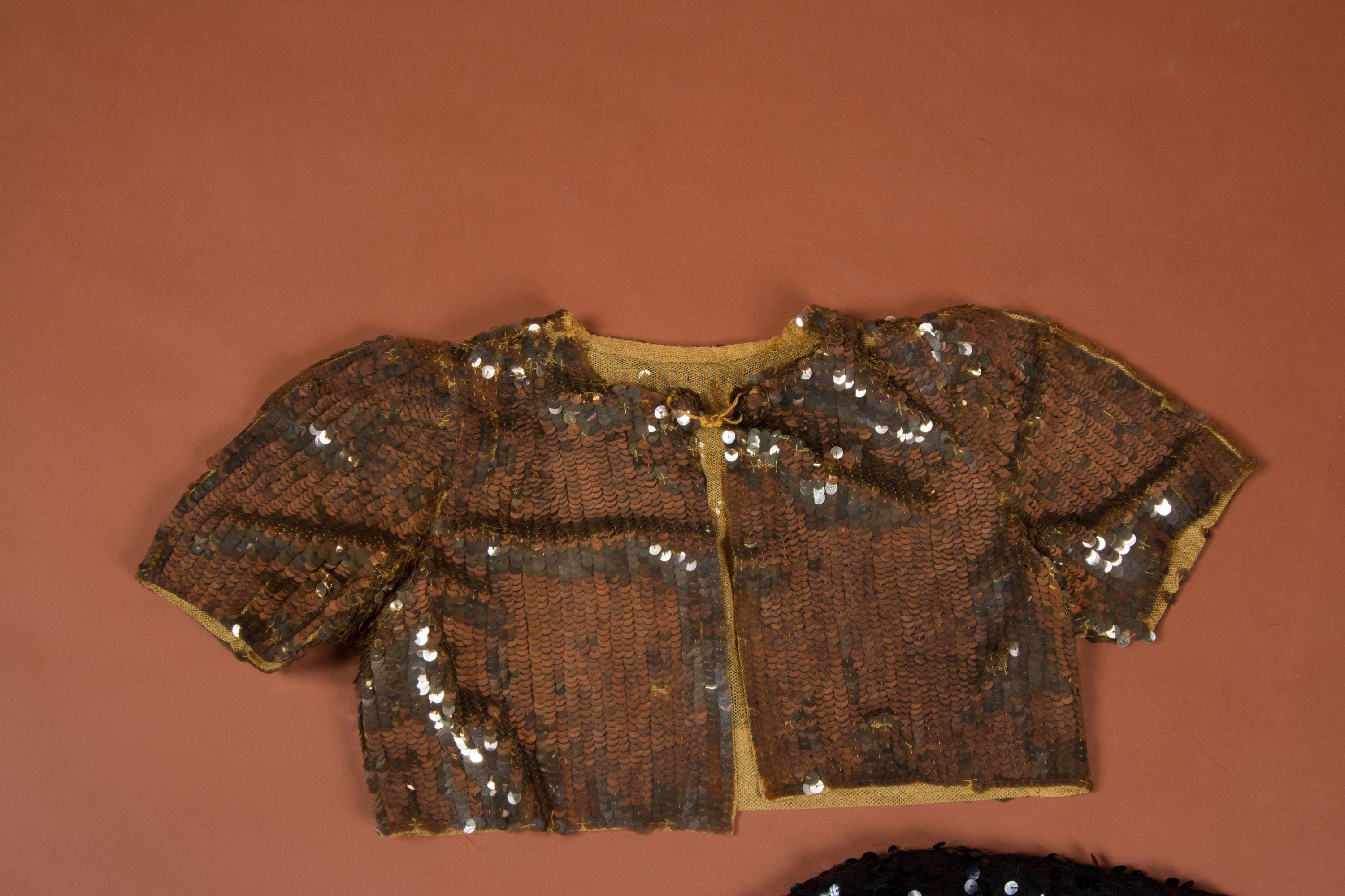 Item 1 - a gold 1930s gelatin sequin bolero