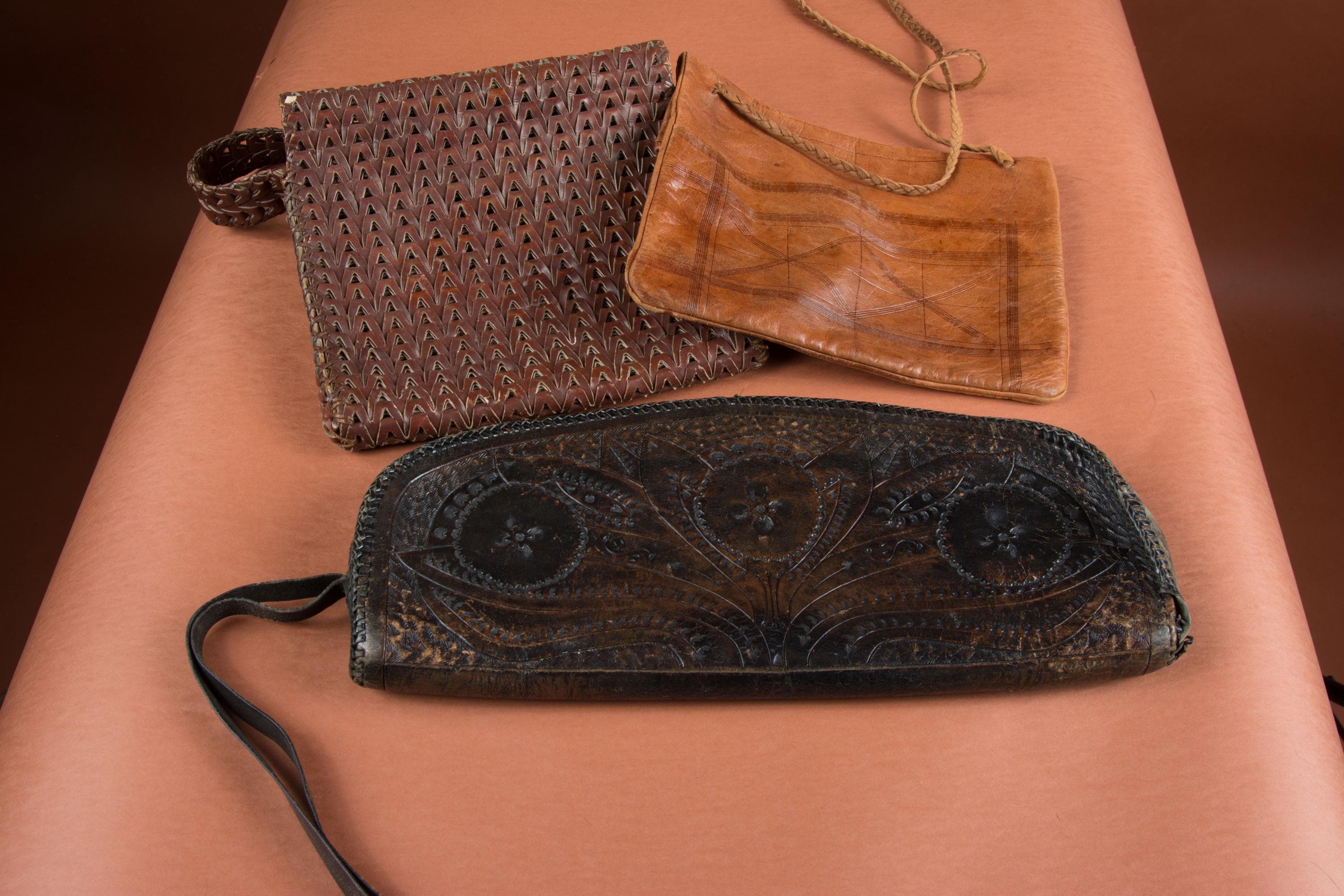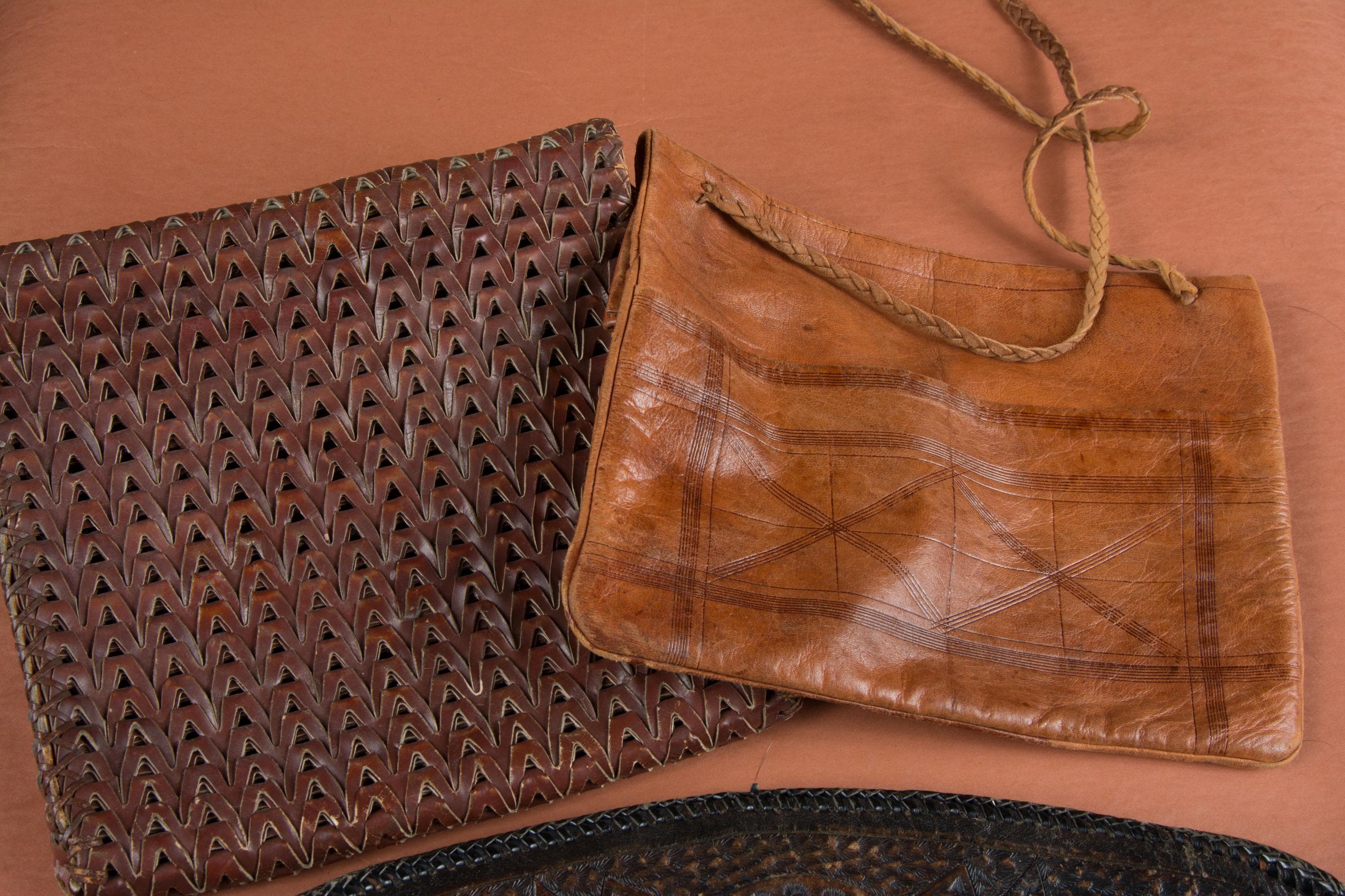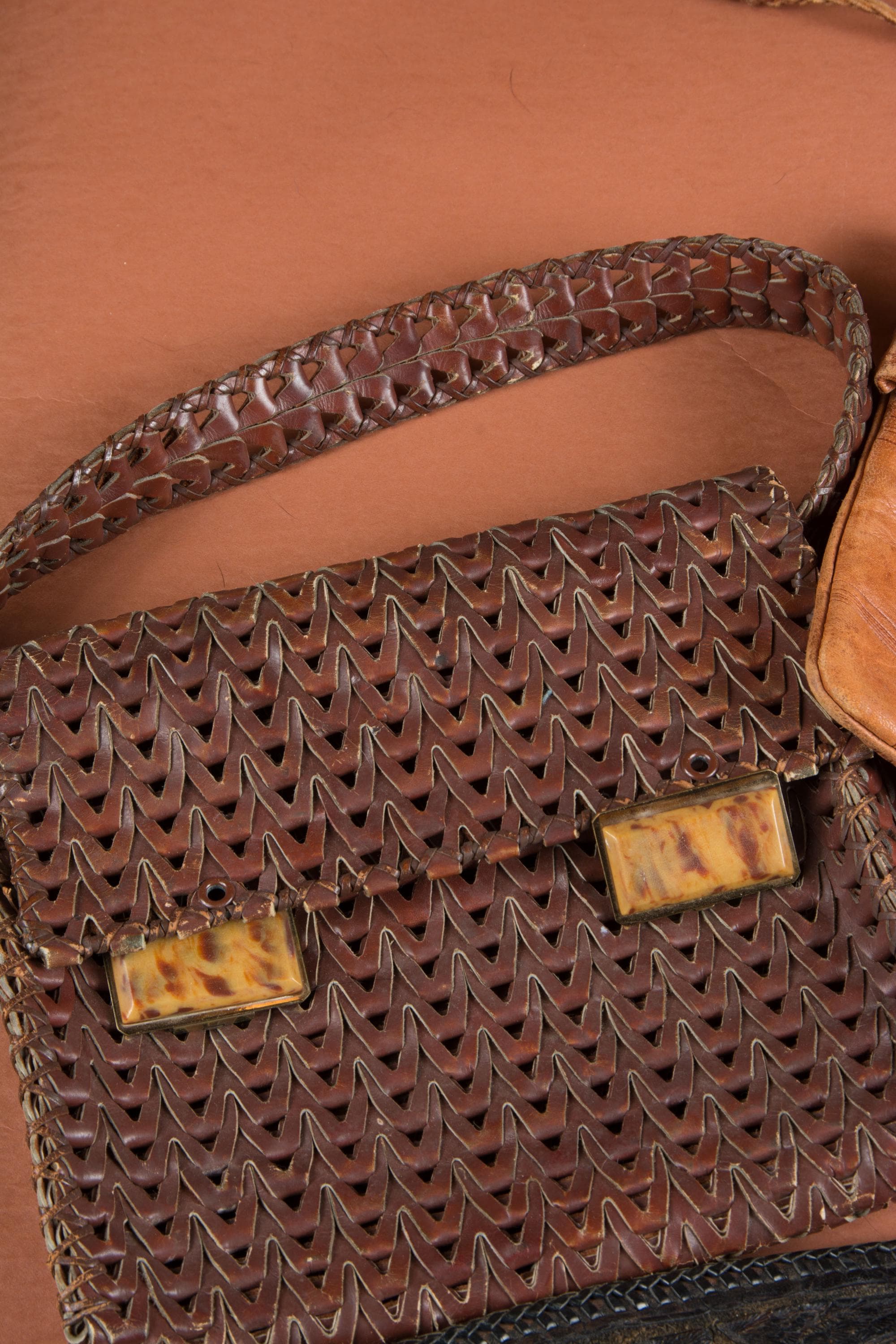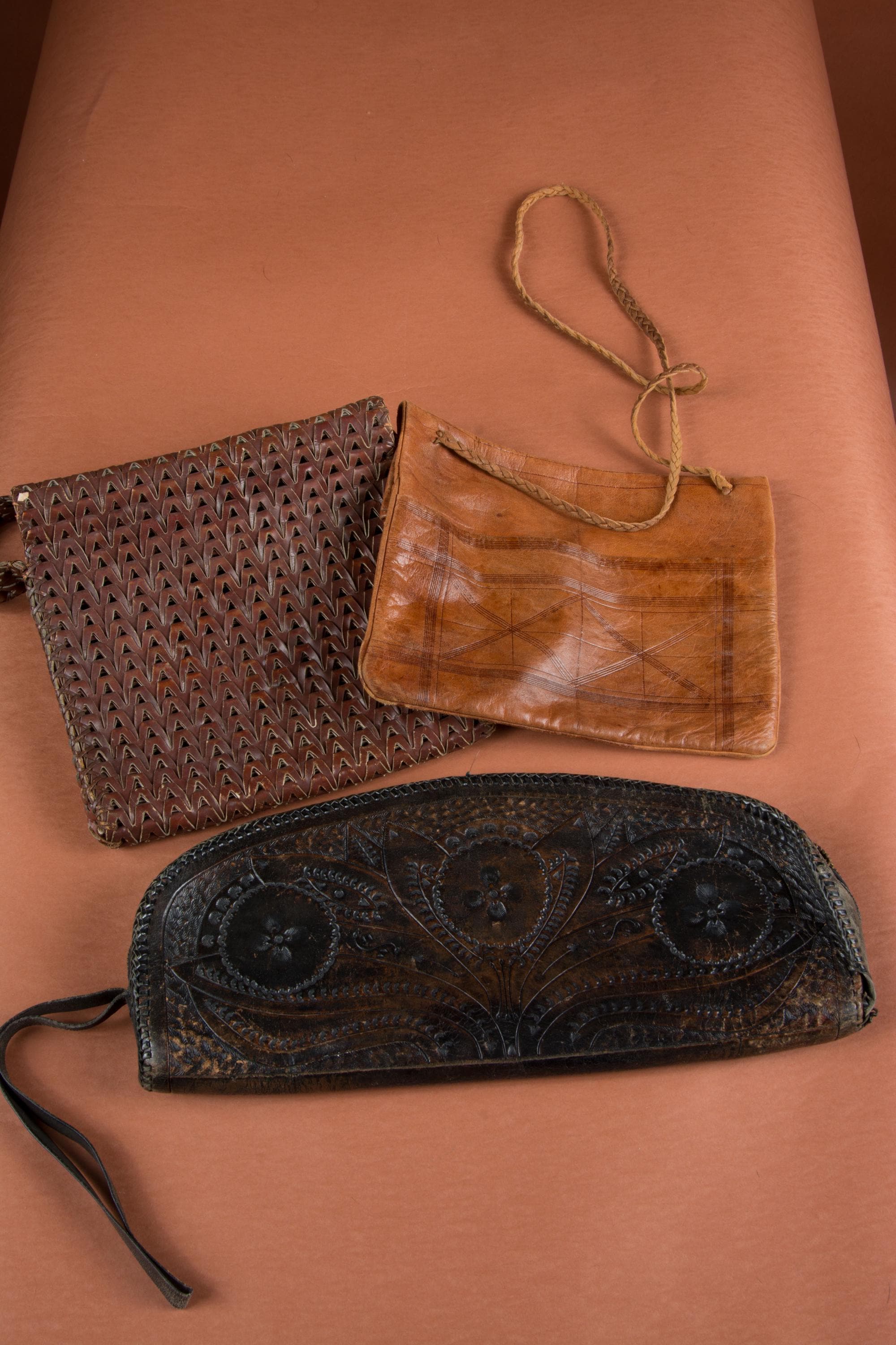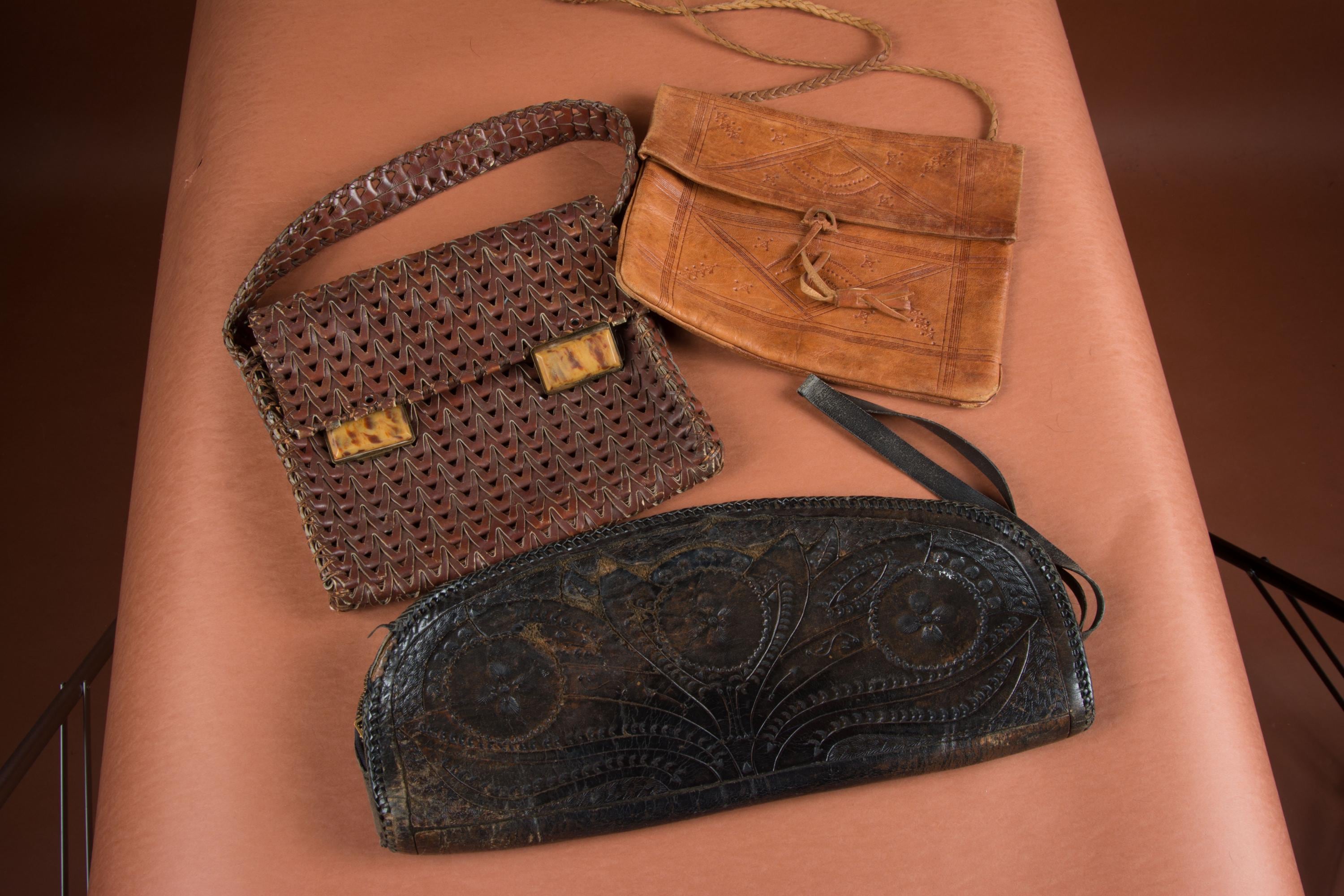 Lot #60 A Group of 3 Various Vintages 1940s 1950s Leatherwork Handbags Purses WOUNDED BIRDS SALE