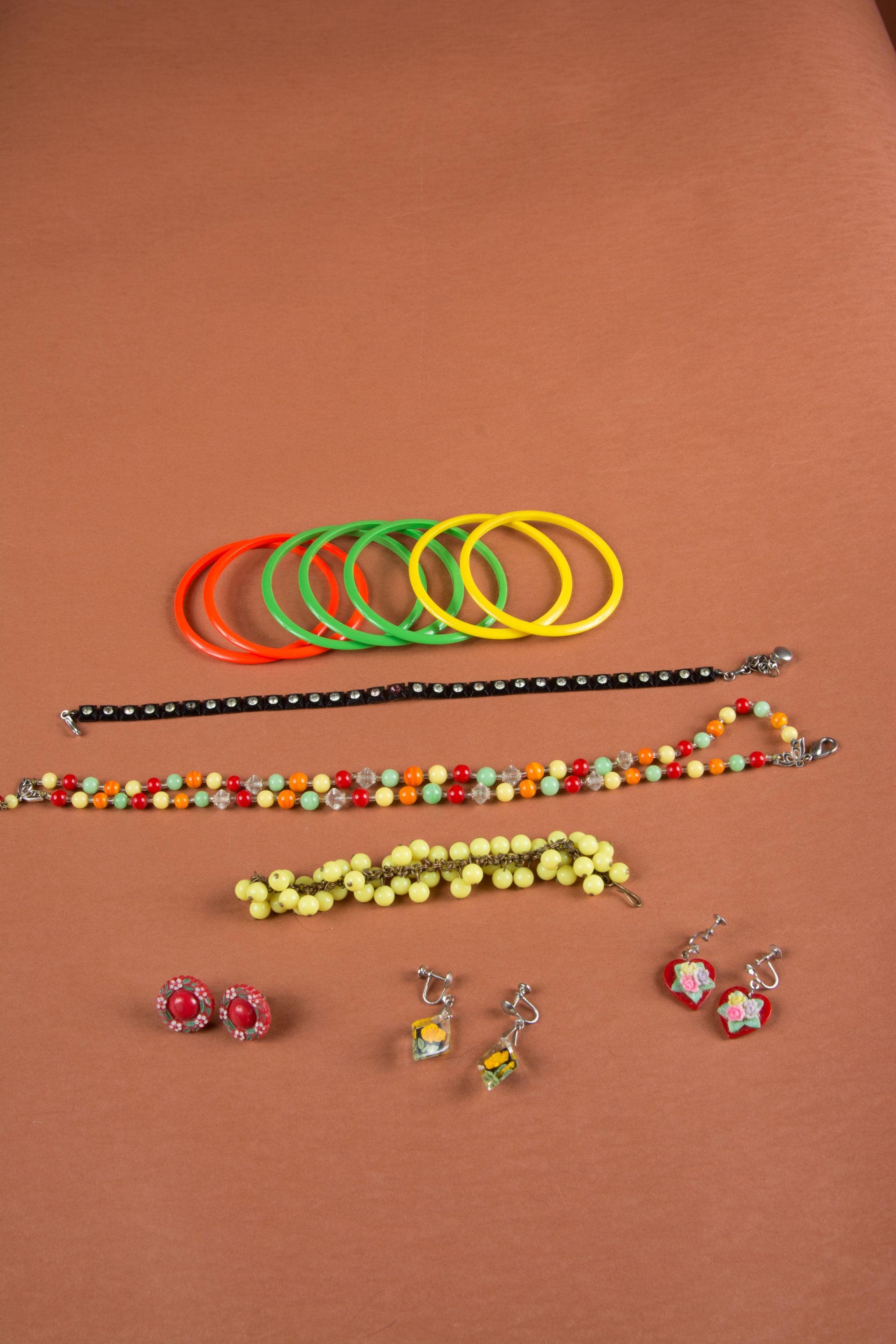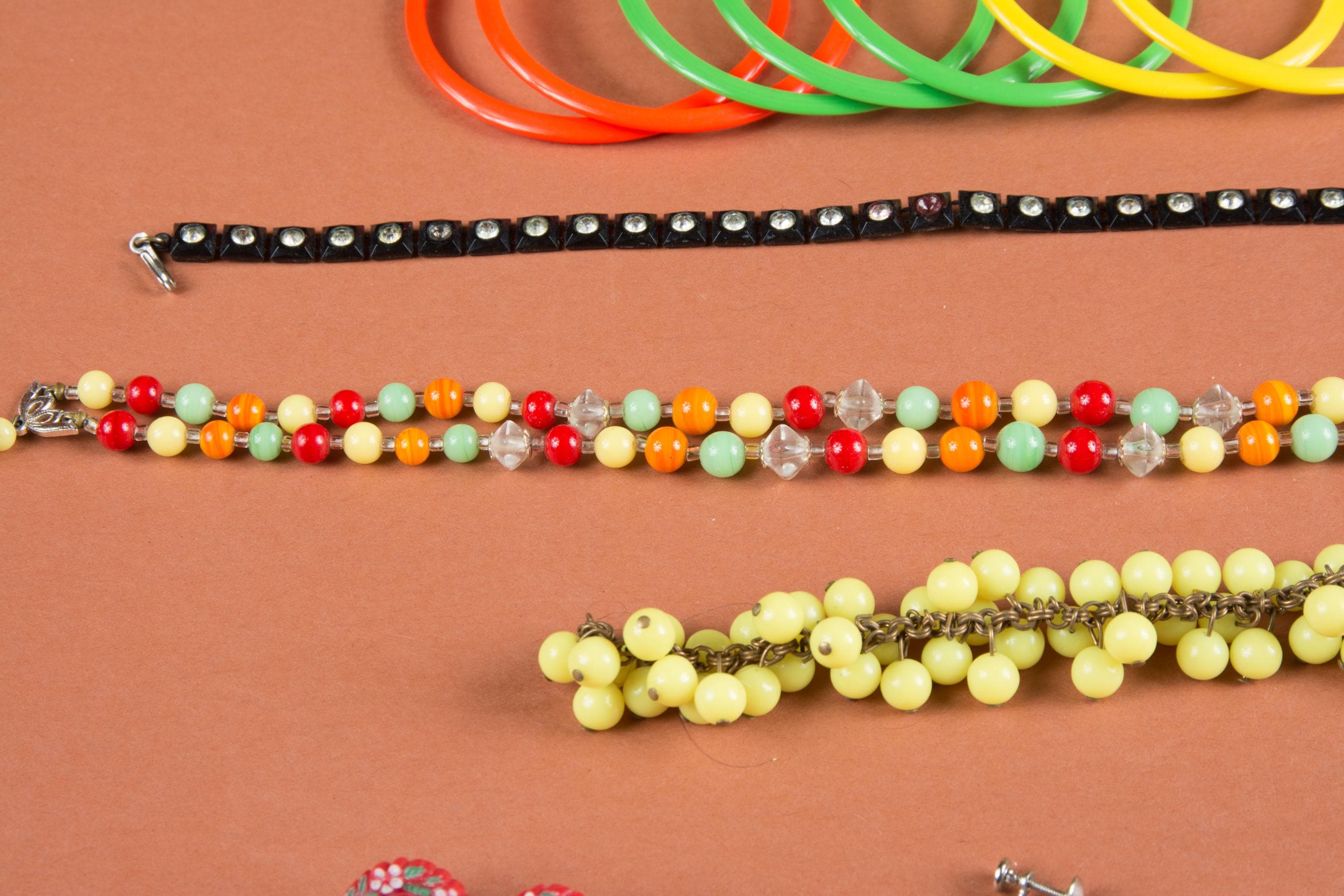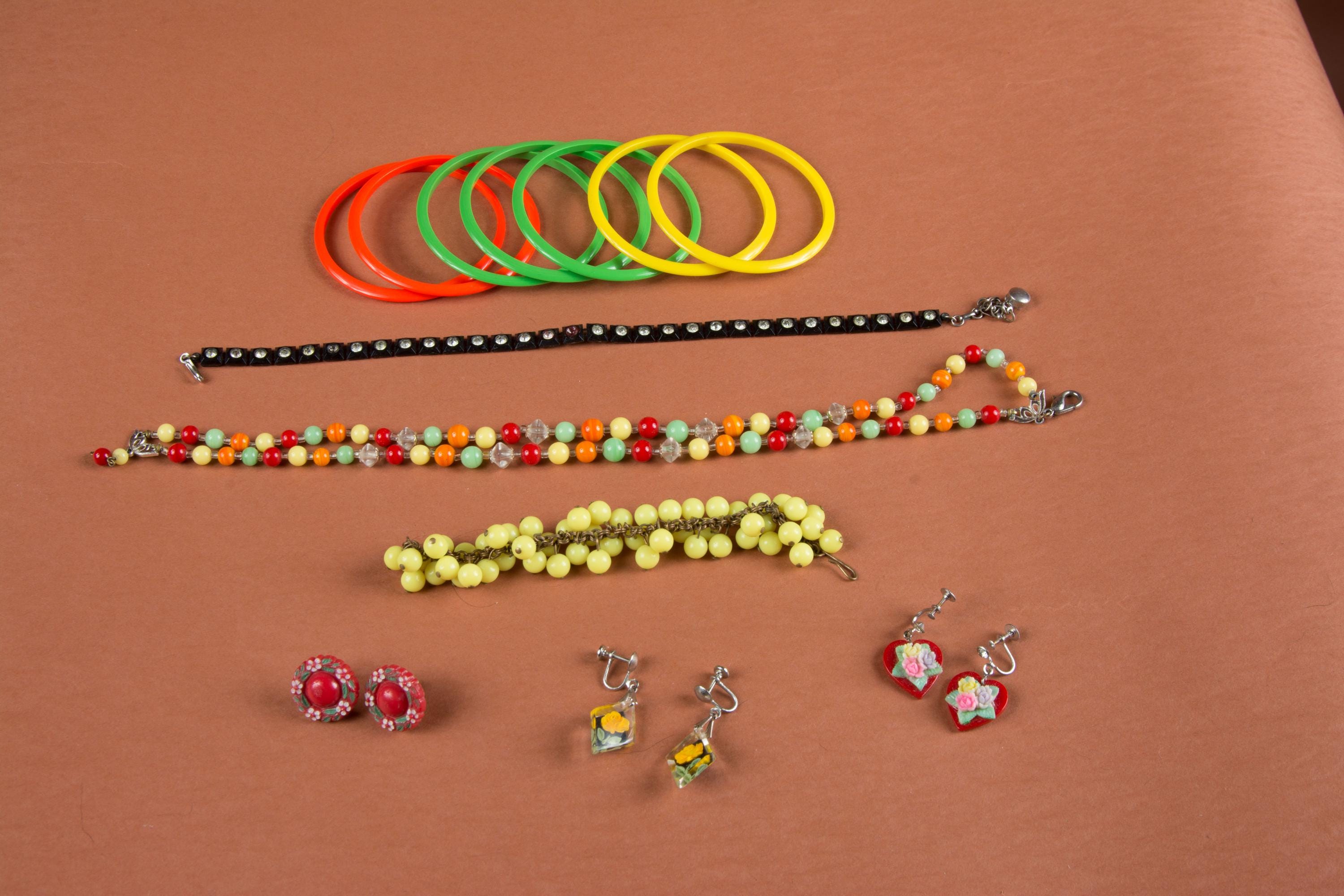 A lot of plastic jewelry from the 1950s and 60s