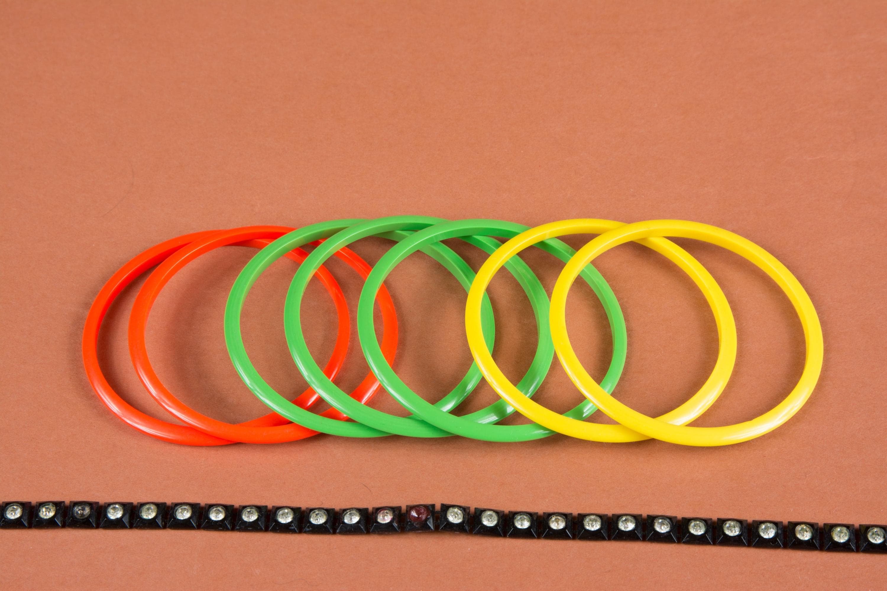 1. 1960s brightly colored spacers - these are NOT bakelite