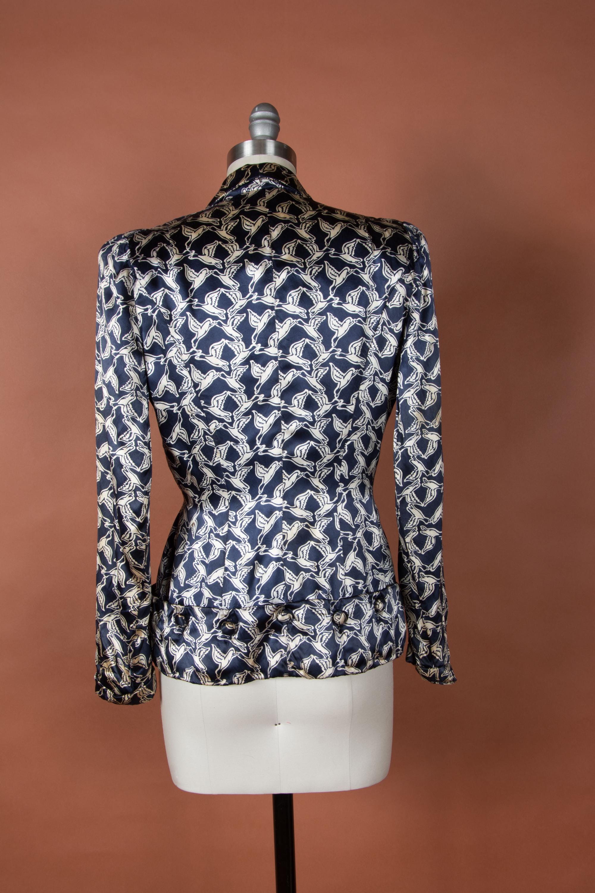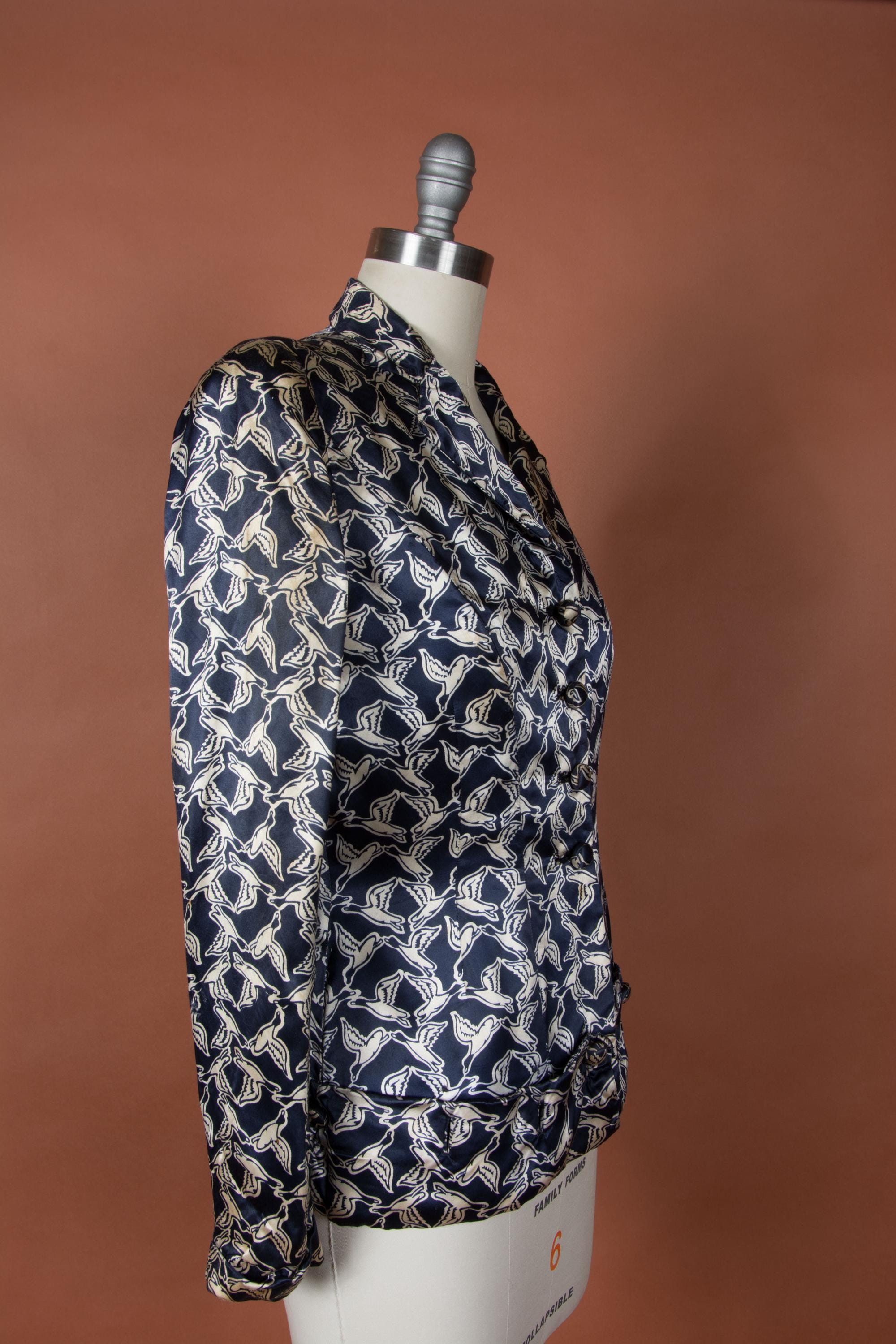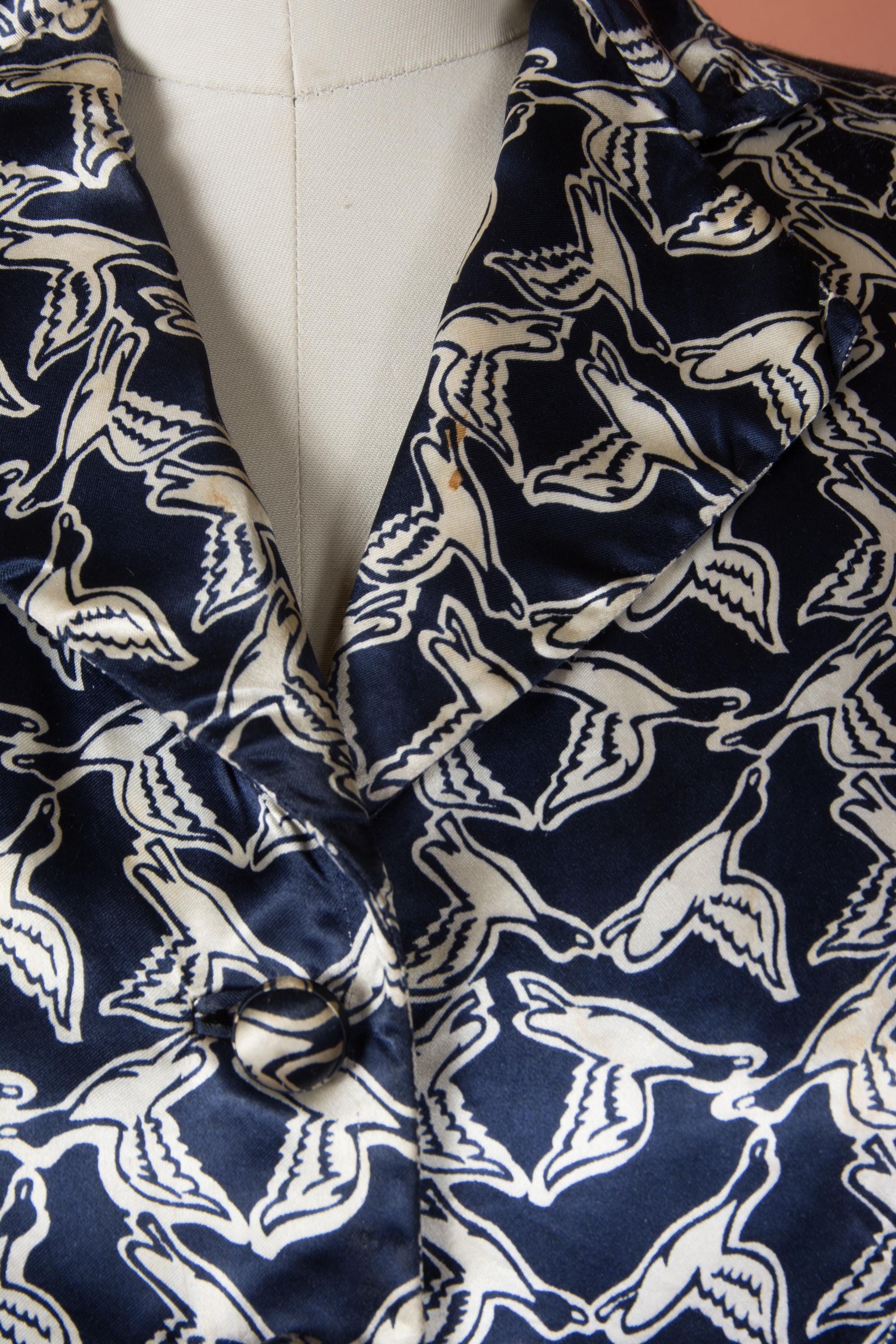 Lot #30 A 1940s Tailored Satin Blazer with Duck Print by Danahy WOUNDED BIRDS SALE