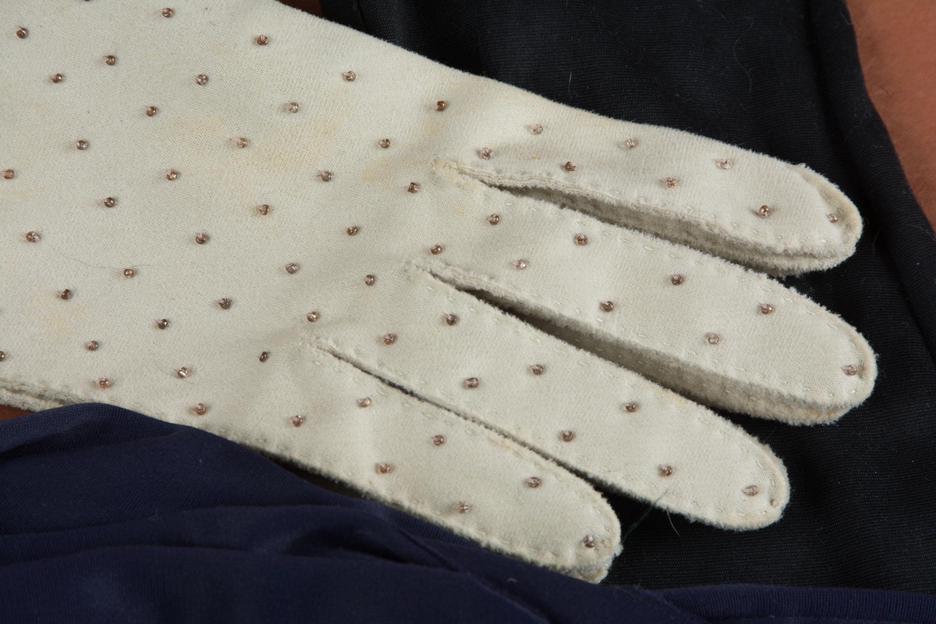 3. 1950s Navy blue gloves. Marked 7 1/2. Good condition, light wear