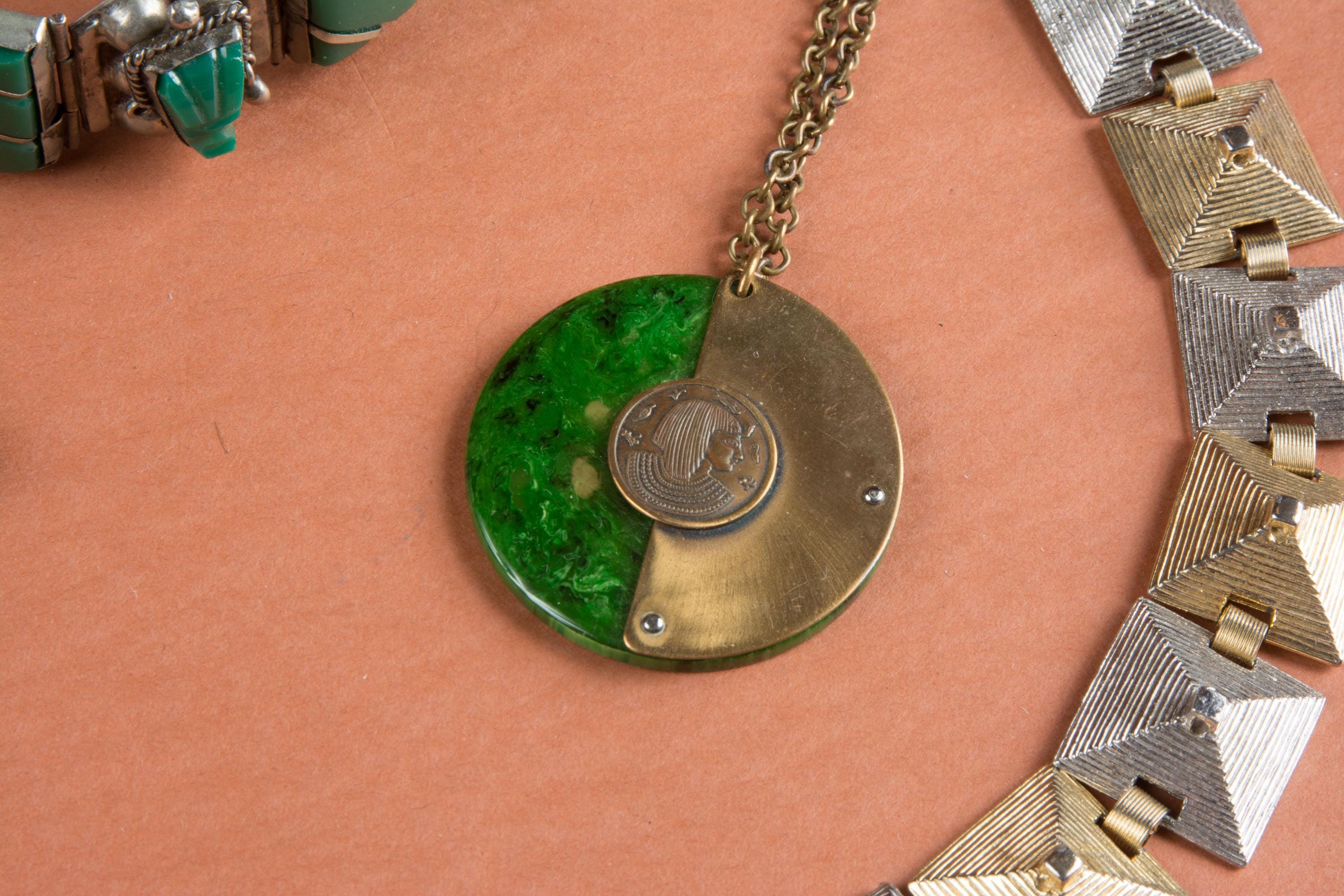 4. 1960s Egyptian Revival pendant, bakelite and brass