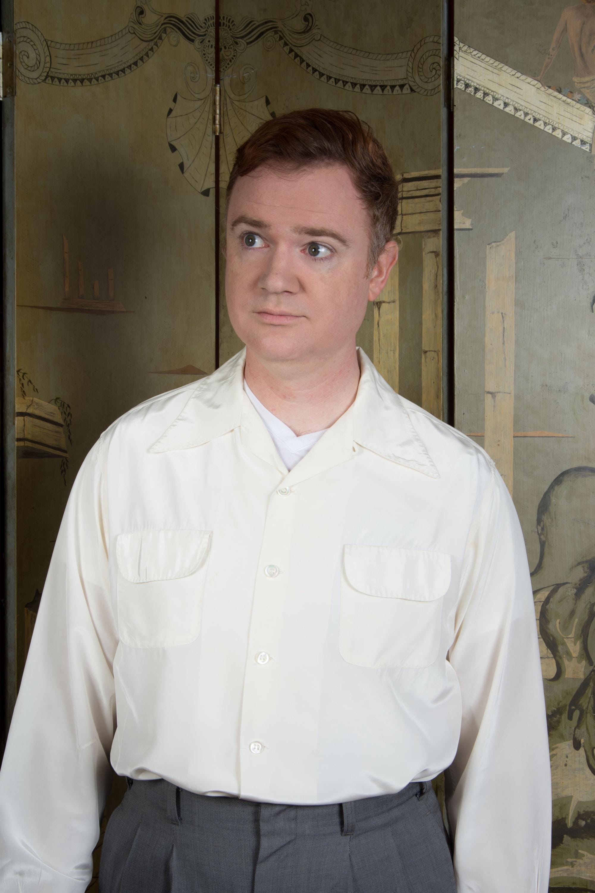 Vintage 1940s silky nylon blend sportshirt features a truly impressively wide top stitched, dagger style loop collar. The material is slipper and lustrous. Features top stitched flap pockets and long sleeves. A great piece for wearing casually or pairing with a smartly tailored suit.