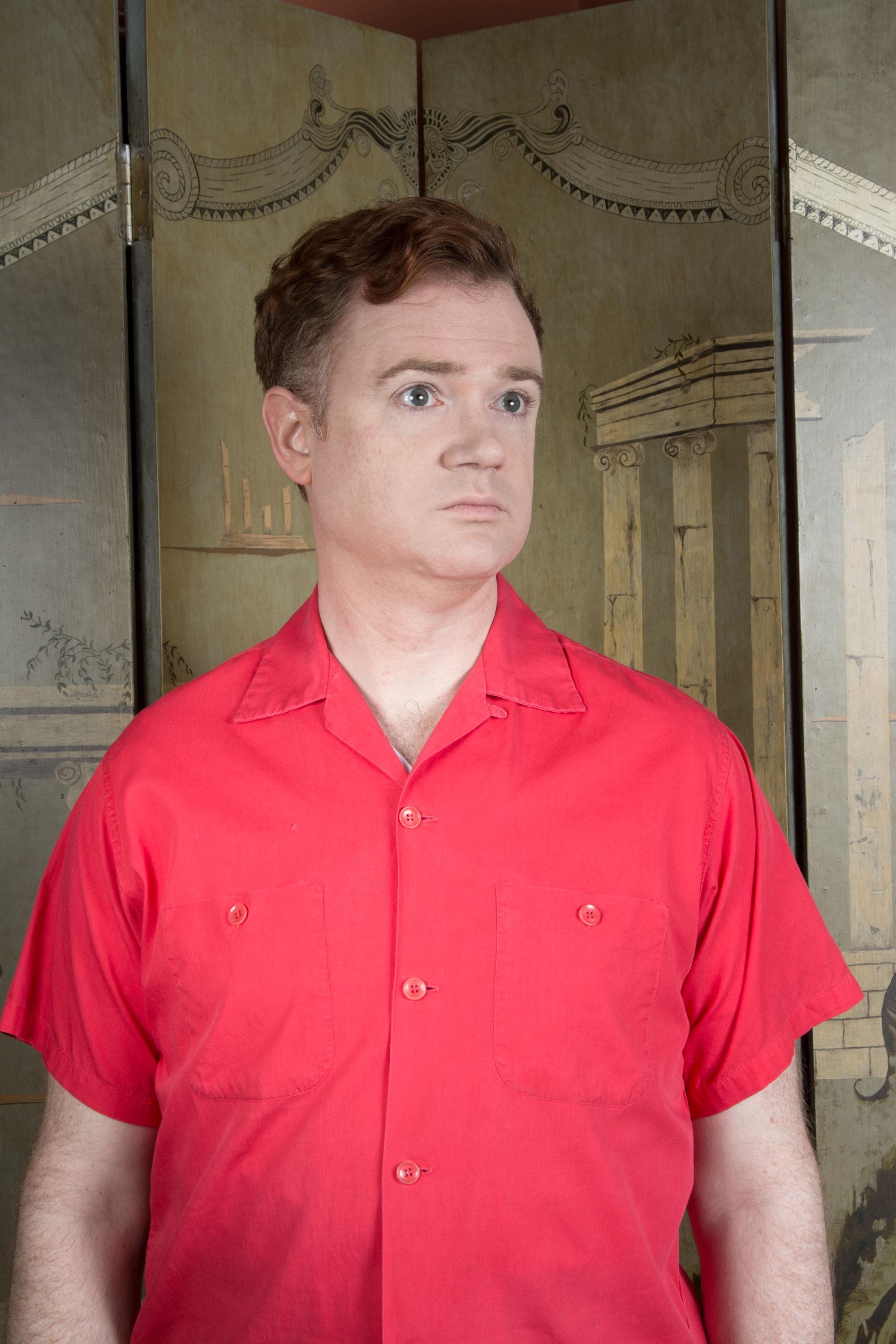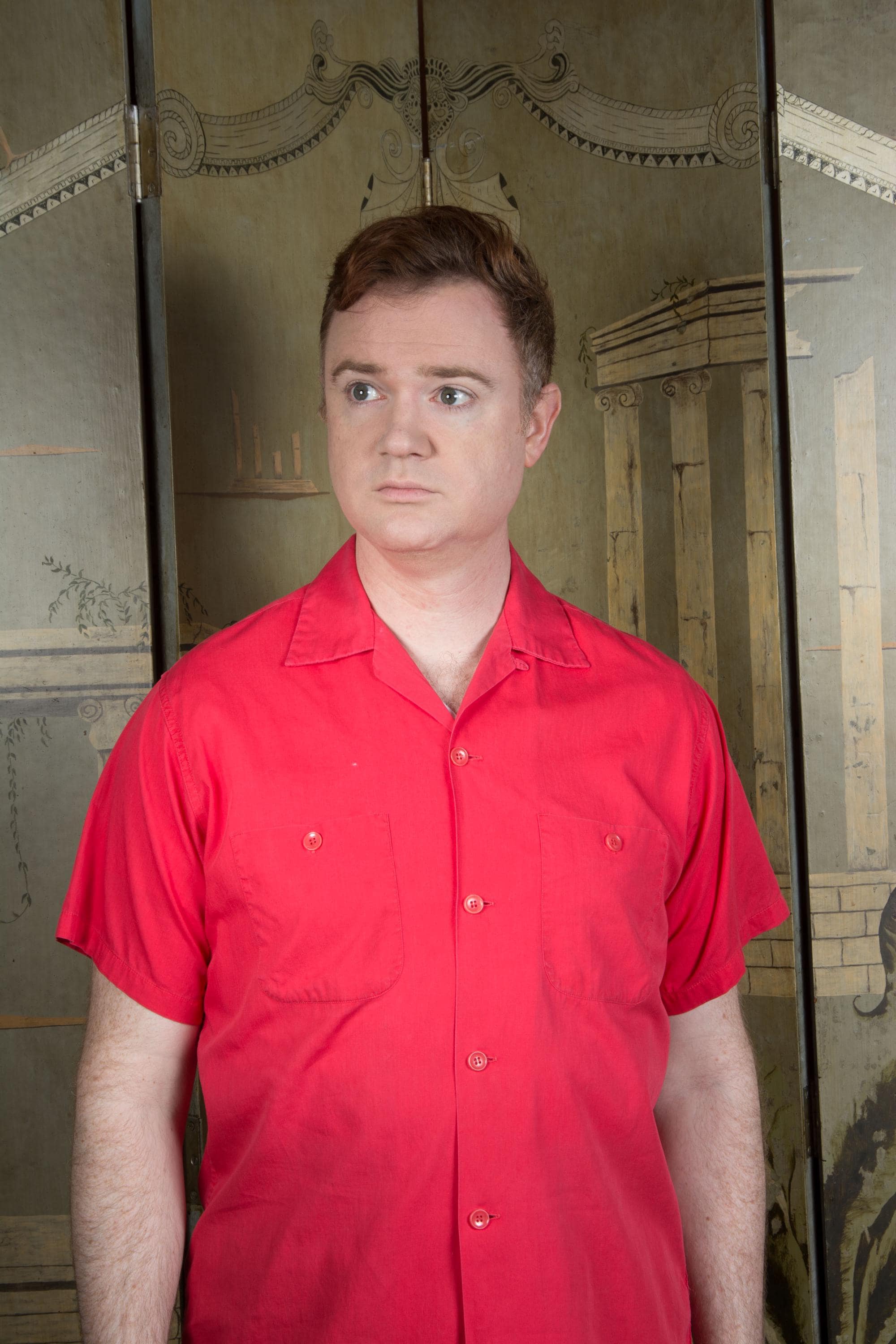 Vintage 1950s Short Sleeve Uniform Shirt Embroidered Back Patches Loop Collar